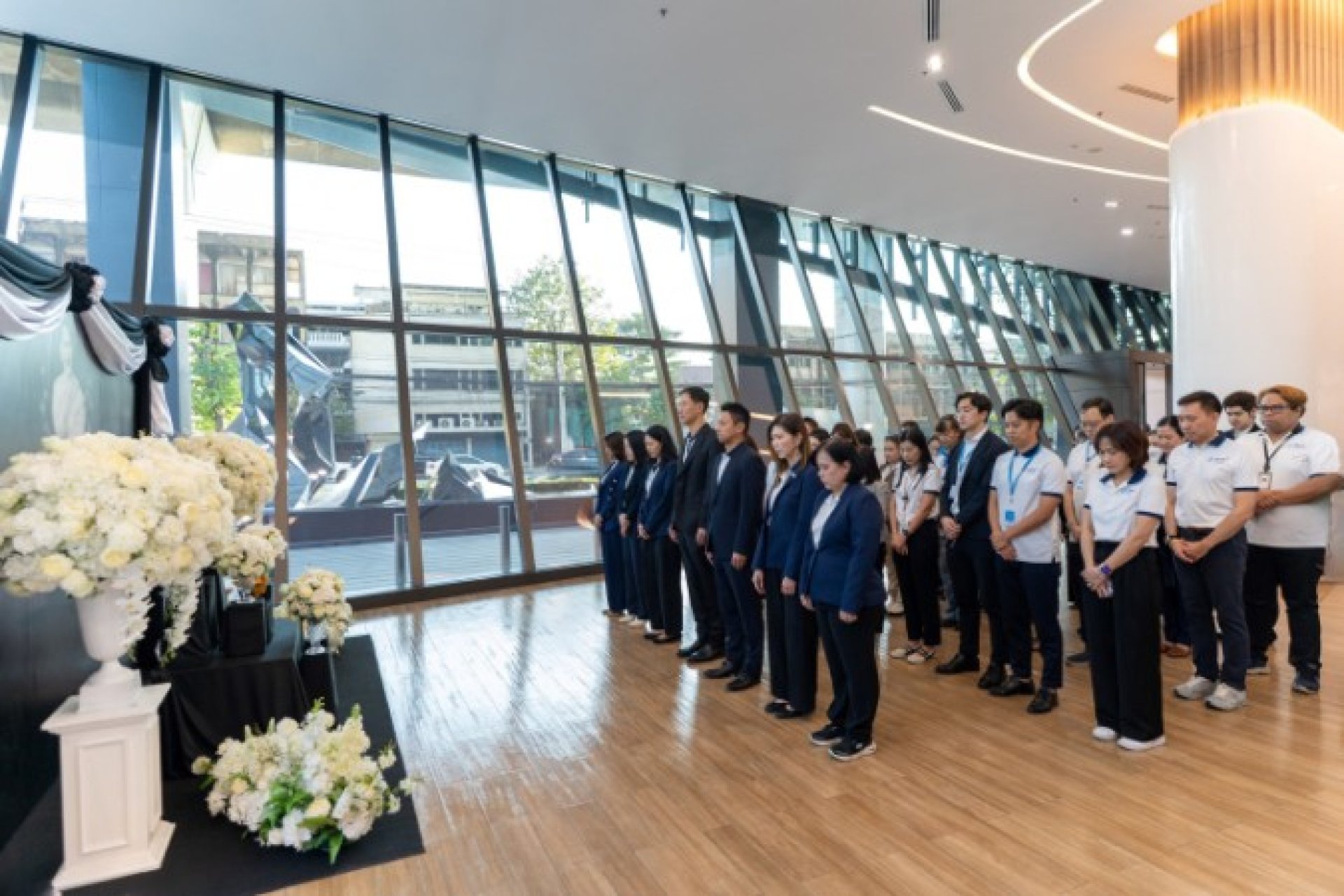 ภายในพิธี คณะผู้บริหารและพนักงานได้ร่วมกันถวายภัตตาหารเช้าและเครื่องไทยธรรมแด่พระสงฆ์ พร้อมประกอบพิธีสงฆ์และเจริญพระพุทธมนต์ เพื่อแสดงความอาลัยและน้อมสำนึกในพระมหากรุณาธิคุณอันหาที่สุดมิได้ ที่ทรงมีต่อพสกนิกรชาวไทยมาอย่างยาวนาน ณ กรุงเทพประกันชีวิต สำนักงานใหญ่