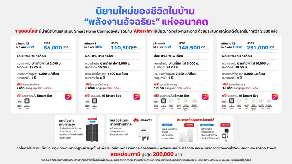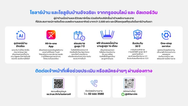 ทรูออนไลน์จับมือ Altervim เปิด Solar Smart Home พร้อม AI บริหารพลังงานอัจฉริยะ รับสิทธิ์ลดหย่อนภาษีสูงสุด 200,000 บาท
