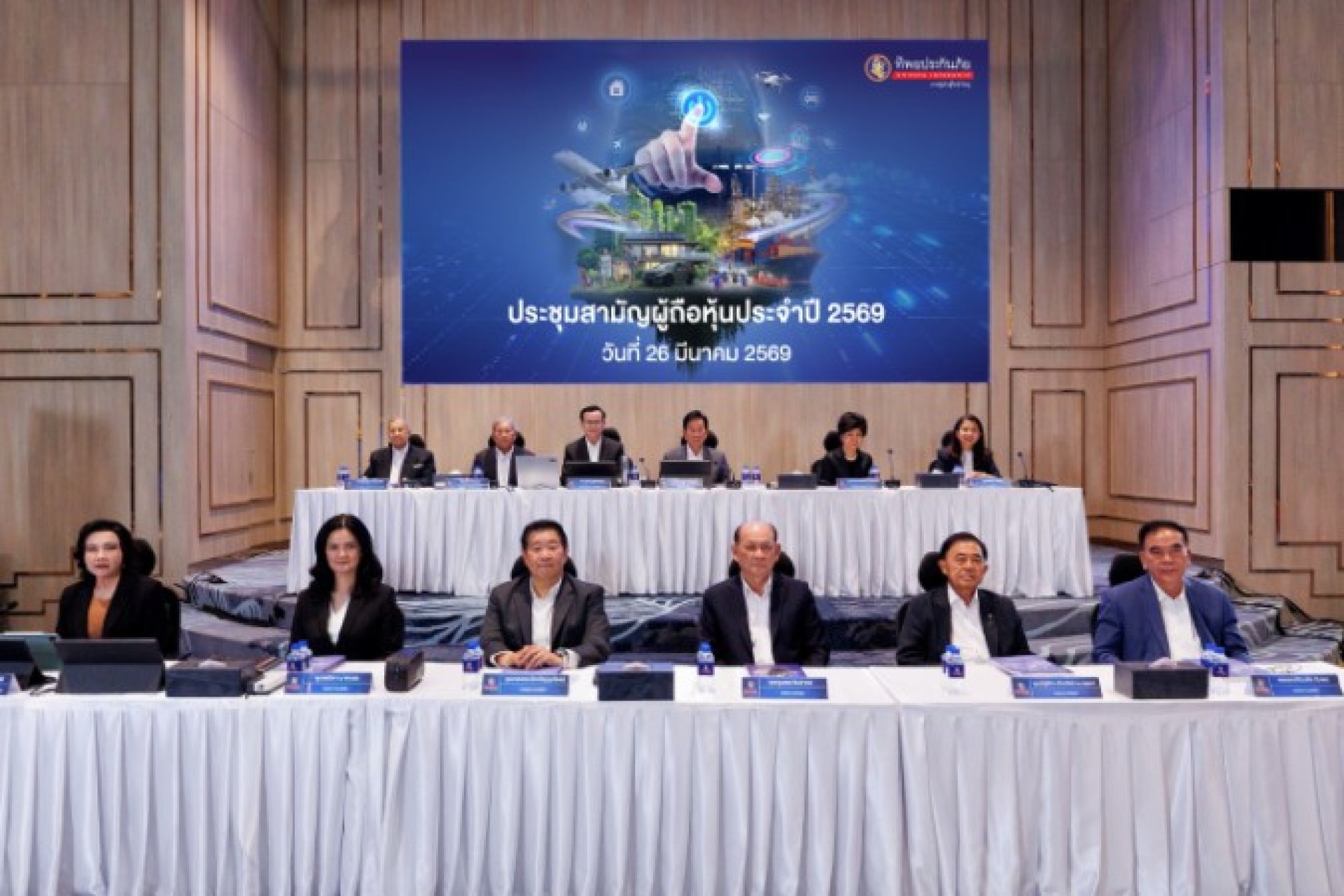 บริษัท ทิพยประกันภัย จำกัด (มหาชน) จัดการประชุมสามัญผู้ถือหุ้นประจำปี 2569 ผ่านสื่ออิเล็กทรอนิกส์ (E-AGM) ถ่ายทอดสดจากห้องประชุมชั้น 25 อาคารสำนักงานใหญ่ของบริษัทฯ โดยมีนายสมใจนึก เองตระกูล ประธานกรรมการ และ ดร.สมพร สืบถวิลกุล กรรมการผู้จัดการใหญ่ พร้อมด้วยคณะกรรมการบริษัท ร่วมแถลงผลการดำเนินงานในการประชุมครั้งนี้ บริษัทฯ ได้รายงานวาระสำคัญให้ผู้ถือหุ้นรับทราบและพิจารณา ซึ่งที่ประชุมมีมติอนุมัติทุกวาระตามที่คณะกรรมการเสนอ