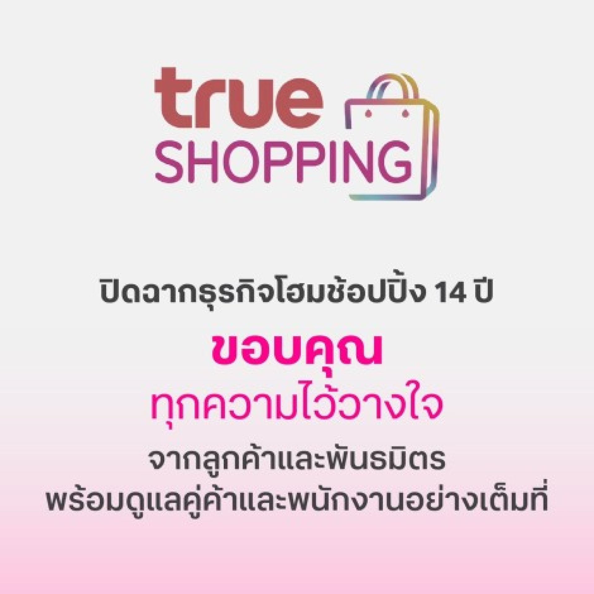 บริษัท ทรู จีเอส จำกัด ผู้ดำเนินธุรกิจ “ทรูช้อปปิ้ง” ขอประกาศยุติการดำเนินธุรกิจ ทรูช้อปปิ้ง หลังให้บริการลูกค้าและคู่ค้ามาอย่างต่อเนื่องยาวนานกว่า 14 ปี โดยตลอดระยะเวลาที่ผ่านมา ทรูช้อปปิ้งได้รับการสนับสนุนอย่างดียิ่งจากลูกค้าและคู่ค้าทุกภาคส่วน บริษัทฯ ขอขอบคุณในความไว้วางใจและความร่วมมือที่มีให้กันมาโดยตลอด