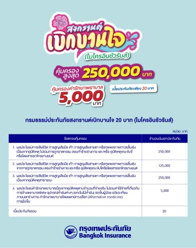• กรมธรรม์ประกันภัยสงกรานต์เบิกบานใจ 20 บาท (ไมโครอินชัวรันส์)