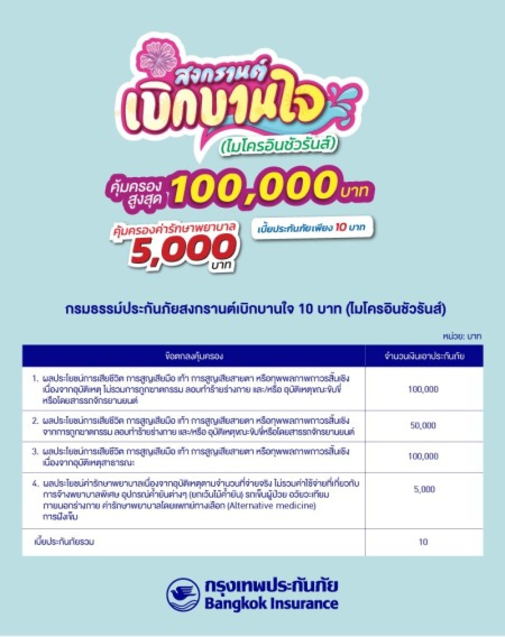 • กรมธรรม์ประกันภัยสงกรานต์เบิกบานใจ 10 บาท (ไมโครอินชัวรันส์)