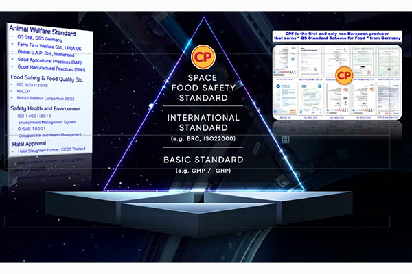 ล่าสุด เนื้อไก่ แบรนด์ซีพี เป็นแบรนด์เนื้อสัตว์ไทยที่ได้รับการรับรองว่ามีมาตรฐานความปลอดภัยระดับอวกาศ (Space Food Safety Standard) ซึ่งเป็นมาตรฐานตามหลักเกณฑ์ความปลอดภัยด้านอาหารขององค์การ NASA./