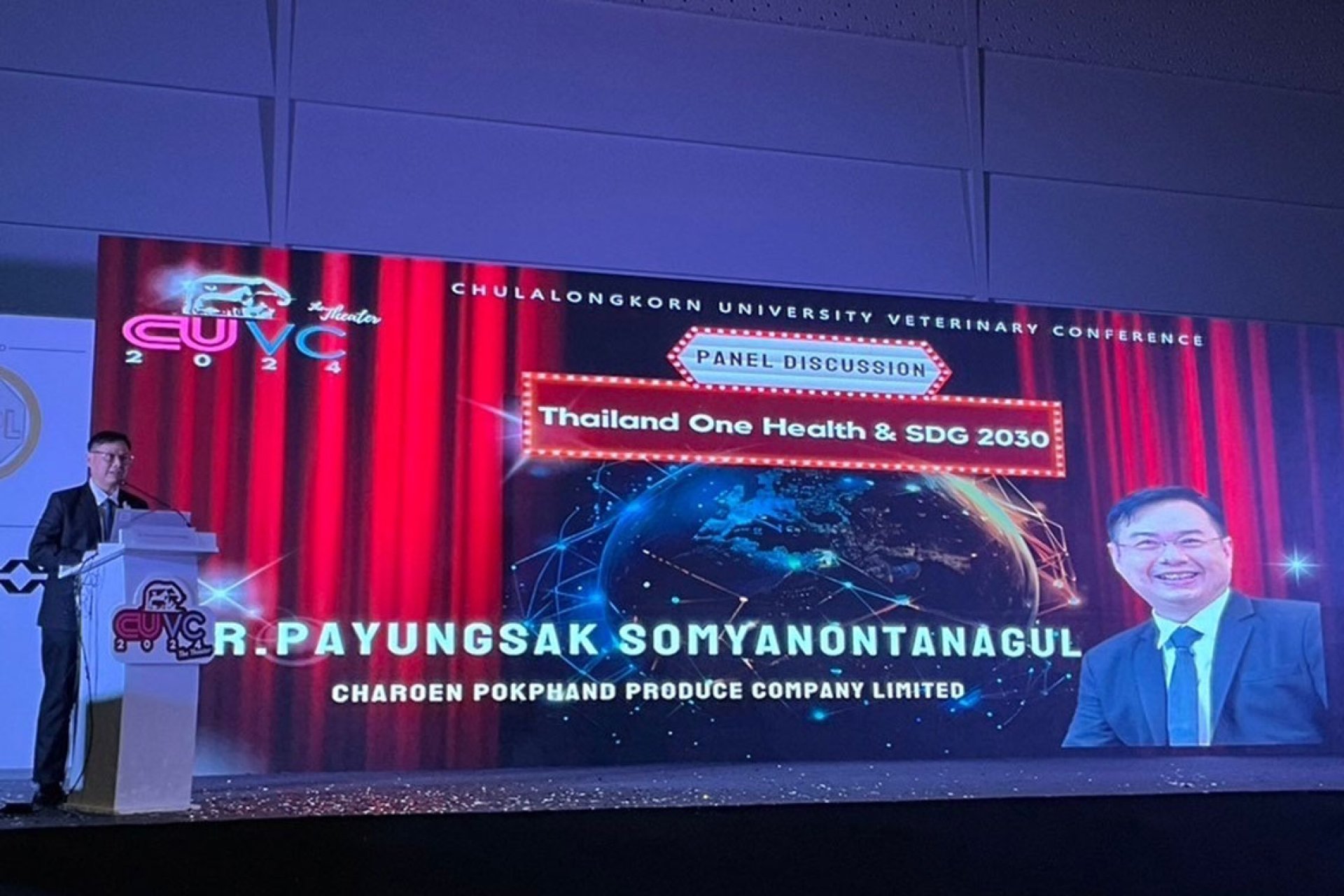 ในงานนี้ ซีพีเอฟ ผู้นำธุรกิจเกษตรอุตสาหกรรมและอาหารครบวงจร โดย น.สพ.พยุงศักดิ์ สมยานนทนากุล รองผู้อำนวยการด้านมาตรฐานฟาร์มและข้อกำหนดลูกค้า ได้ร่วมเป็นวิทยากร ถ่ายทอดความสำเร็จในการผลิตไก่เนื้ออย่างยั่งยืน ซึ่งซีพีเอฟได้นำเทคโนโลยี Smart Farm มาช่วยเพิ่มประสิทธิภาพการผลิตในฟาร์มเลี้ยงสัตว์ ขณะเดียวกัน ได้ยึดหลักสวัสดิภาพสัตว์ สุภาพหนึ่งเดียว หรือ One Health มาเป็นหลักปฏิบัติในการเลี้ยงสัตว์ในฟาร์ม อย่างเคร่งครัด เพื่อให้สัตว์อยู่ในสิ่งแวดล้อมที่ดี เติบโตอย่างเหมาะสม ตลอดห่วงโซ่อุปทาน รวมถึงผู้มีส่วนได้ส่วนเสียทุกฝ่ายในการปกป้องทั้งคน สัตว์ และสิ่งแวดล้อม ซึ่งภายในงานมีนักวิชาการสายสัตวแพทย์ สายสาธารณสุข และสุขภาพสัตว์ให้ความสนใจเข้าร่วมฟังกันอย่างคับคั่งกว่า 500 คน