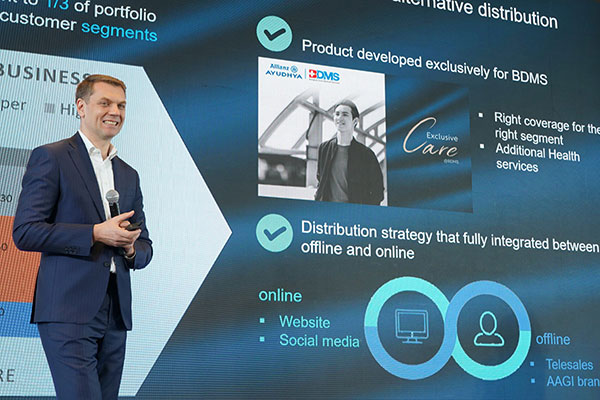 มร.ลาร์ส ไฮบุทสกี้ กรรมการผู้จัดการใหญ่และประธานเจ้าหน้าที่บริหาร บมจ.อลิอันซ์ อยุธยา ประกันภัย กล่าวว่า จากความสำเร็จของความร่วมมือระหว่าง อลิอันซ์ อยุธยา และ BDMS ตั้งแต่ปี 2018 ในเรื่องของผลิตภัณฑ์คุ้มครองชีวิตและสุขภาพระดับพรีเมี่ยม My First Class @BDMS ต่อเนื่องมาถึงการยกระดับประสบการณ์ลูกค้าด้วยระบบ API ที่เชื่อมต่อกัน ทำให้ลูกค้าได้รับความคุ้มครองสุขภาพและบริการที่มีความสะดวก รวดเร็ว ณ โรงพยาบาลในเครือ บีดีเอ็มเอส นำไปสู่การเติบโตในธุรกิจอย่างต่อเนื่อง วันนี้เราจึงเดินหน้าต่อยอดความร่วมมือที่จะสร้างการเติบโตและความแข็งแกร่งให้กับทั้งสองธุรกิจมากยิ่งขึ้น ด้วยการผสานกำลังของสองกลุ่มบริษัทที่มีมาตรฐานและเครือข่ายการดำเนินงานระดับโลกทั้งในด้านการรักษาสุขภาพและการให้ความคุ้มครองแก่ชาวไทย ผ่านผลิตภัณฑ์ประกันภัยสุขภาพ โดยจะมุ่งเน้นไปที่ลูกค้ากลุ่มลูกค้าระดับกลางวัยทำงาน เป็นไปตามแผนของอลิอันซ์ อยุธยา ที่จะเติบโตธุรกิจใน segment นี้มากขึ้น เพราะเป็นตลาดใหญ่ที่มีศักยภาพ ที่สำคัญถือเป็นครั้งแรกที่เรามุ่งเน้นช่องทางการขายแบบ O2O (online to offline) ผสานการทำงานทั้งบนออนไลน์และออฟไลน์เพื่อประสิทธิภาพการขายและความสะดวกสูงสุดกับลูกค้า
