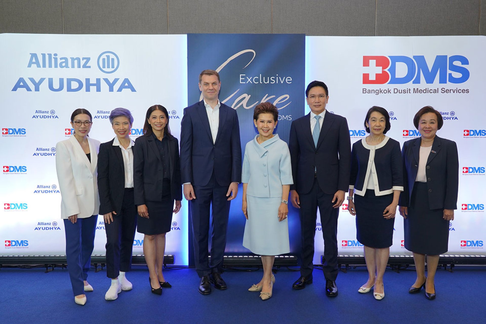 นางสาวนภา ตรีรัตนาวงศ์ รองกรรมการผู้จัดการใหญ่ กลุ่มงานธุรกิจประกันสุขภาพ กล่าวว่า ในส่วนของ อลิอันซ์ อยุธยา เอง ในฐานะหนึ่งในผู้นำประกันสุขภาพ เรามีความพร้อมและบริการด้านสุขภาพที่ครบวงจร เช่น pre-authorization การบริการตรวจสอบสิทธิ์ก่อนการเข้ารับการรักษาในสถานพยาบาลแบบผู้ป่วยใน บริการ Health Concierge ผู้ประสานงานด้านประกันสุขภาพ เพื่ออำนวยความสะดวกด้านการรักษาพยาบาลของเรา ที่ให้ลูกค้าสามารถเข้าถึงบริการจากผู้เชี่ยวชาญทางการแพทย์และการรักษาที่ดีที่สุด และบริการต่างๆ อีกมากมาย สำหรับความร่วมมือในครั้งนี้ เป็นการนำเสนอผลิตภัณฑ์สุขภาพ ที่ร่วมกันพัฒนากับกลุ่มบีดีเอ็มเอส ภายใต้ชื่อ Exclusive Care @BDMS เน้นเจาะกลุ่มลูกค้าระดับกลาง คนทำงาน พนักงานบริษัท และเป็นผู้ที่ต้องการรับบริการทางการแพทย์ที่ดีที่สุดจากกลุ่มโรงพยาบาลในเครือบีดีเอ็มเอส โดยครอบคลุมการรักษาพยาบาล มีให้เลือก 2 แผนด้วยวงเงินคุ้มครอง 1.5 ล้าน และ 5 ล้านบาทต่อปี จ่ายค่ารักษาพยาบาลตามจริง ค่าห้องพักสูงสุด 7,000 บาทต่อวัน (สำหรับแผน 5 ล้านบาท) คืนเบี้ยประกันภัยทุกปี 10% กรณีไม่มีการเคลม มีส่วนลดกรมธรรม์แบบครอบครัว 10% (เมื่อซื้อตั้งแต่ 2 คนขึ้นไป) สามารถต่ออายุได้ตลอดชีพ