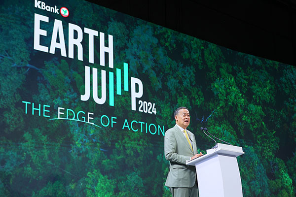กสิกรไทยจัดงาน EARTH JUMP 2024 : The Edge of Action ต่อเนื่องเป็นปีที่ 2 เป็นสัญญาณที่ดีของธุรกิจไทยที่ตระหนักถึงผลกระทบต่อภาวะโลกเดือดซึ่งจะส่งผลต่อความอยู่รอดของธุรกิจ โดยได้รับเกียรติจาก นายเศรษฐา ทวีสิน นายกรัฐมนตรี กล่าวปาฐกถาพิเศษฉายภาพเป้าหมายและทิศทางของประเทศในเรื่องของพลังงานสะอาด พร้อมด้วยผู้นำองค์กรชั้นนำระดับโลกและไทยกว่า 40 ท่านร่วมกันให้ความรู้เพื่อยกระดับธุรกิจและสังคมไทยสู่เศรษฐกิจคาร์บอนต่ำ ผู้เข้าร่วมงานกว่า 2,000 คนได้รับความรู้ในทุกมิติ ทั้งโอกาส กฎเกณฑ์ มาตรการต่างๆ การสนับสนุนการเงินของธนาคาร รวมถึงการแชร์ประสบการณ์จากธุรกิจที่ปรับตัวแล้ว เพื่อพร้อมรับมือและปรับตัวสู่เศรษฐกิจคาร์บอนต่ำไปด้วยกัน