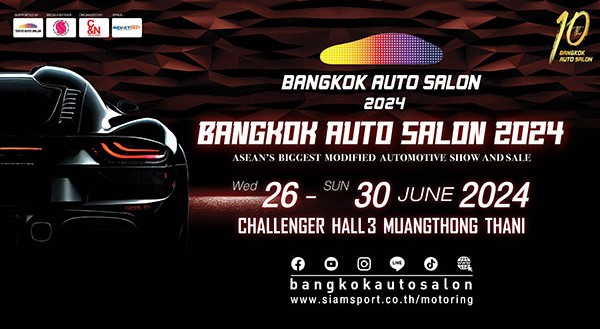 เตรียมตัวให้พร้อมกับงานเฟสติวัลสุดมันส์แห่งปี แบงค็อก ออโต ซาลอน 2024 ครั้งที่ 10 จัดโดย บริษัท คอร์โน แอนด์ แนช จำกัด โดยได้รับลิขสิทธิ์จากผู้จัดงานโตเกียว ออโต ซาลอน บริษัท ซัง-เอ คอร์ปอเรชั่น ญี่ปุ่น ด้วยรูปแบบงานที่โดดเด่นและพัฒนาให้ตอบโจทย์ทุกภาคส่วนจนได้รับการยอมรับ ว่าเป็นมหกรรมยานยนต์และอุปกรณ์แต่งรถยิ่งใหญ่ที่สุดในอาเซียน นี่คือโอกาสพิเศษที่จะได้สัมผัสกับปรากฏการณ์ทางวัฒนธรรมยานยนต์และร่วมเป็นส่วนหนึ่งในการขับเคลื่อนอุตสาหกรรมยานยนต์ไทย สู่ระดับโลก กำหนดจัดแสดง วันพุธที่ 26 - วันอาทิตย์ที่ 30 มิถุนายน 2567 ณ อาคารชาเลนเจอร์ ฮอลล์ 3 อิมแพ็ค เมืองทองธานี จัดแสดงงานเวลา 12.00-21.30 น.ในวันจันทร์-ศุกร์ และเวลา 11.00-21.30 น. ในวันเสาร์-อาทิตย์ บัตรเข้าชมงานจำหน่ายบัตรราคา 100 บาท สามารถซื้อบัตรได้ทางช่องทางออนไลน์ https://www.thaiticketmajor.com/ ตั้งแต่วันที่ 12 มิถุนายน 2567 เป็นต้นไป และทางไทยทิคเก็ตเมเจอร์ทุกสาขา