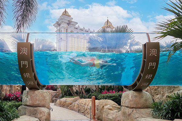 Grand Resort Deck ที่มีเอกลักษณ์เฉพาะตัว ซึ่งตั้งอยู่ใน Galaxy Macau มีพื้นที่ 75,000 ตารางเมตร ประกอบด้วย Skytop Adventure Rapids ที่ยาวที่สุดในโลก และ Skytop Wave Pool ที่ใหญ่ที่สุด