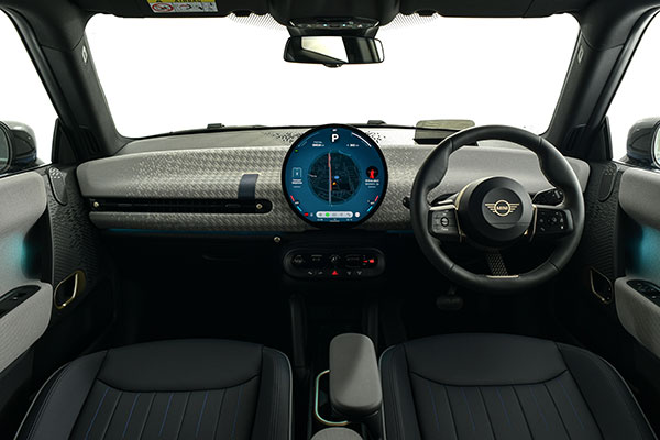 สำหรับฟีเจอร์ที่โดดเด่นในห้องโดยสารของมินิ คูเปอร์ เอสอี ใหม่ ที่สะท้อนตัวตนของมินิเวอร์ชั่นต้นตำรับตั้งแต่ปี ค.ศ. 1959 คือหน้าจอ MINI Interaction Unit ทรงกลมขนาดใหญ่ที่แผงคอนโซลด้านหน้า ซึ่งเป็นจอแสดงผล OLED ความละเอียดสูง นำเสนอประสบการณ์การใช้งานที่สะดวกสบายในแบบฉบับที่ไม่ต่างจากการใช้สมาร์ทโฟน โดยส่วนบนของหน้าจอจะเป็นพื้นที่แสดงข้อมูลสำคัญของตัวรถ เช่น ความเร็วรถและสถานะแบตเตอรี่ ในขณะที่ส่วนที่เหลือของจอแสดงผลทรงกลมยังสามารถปรับเปลี่ยนให้แสดงข้อมูลการนำทาง เพลงและความบันเทิงอื่น ๆ รวมถึงฟีเจอร์ด้านการเชื่อมต่อต่าง ๆ ได้อย่างครบครันและสะดวกง่ายดาย นอกจากนี้ ระบบ Head-up Display ก็ช่วยให้ผู้ขับขี่มองเห็นข้อมูลสำคัญของตัวรถได้โดยไม่ต้องละสายตาจากท้องถนนอีกด้วย