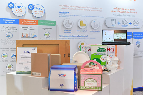 SCGP เสริมธุรกิจด้วยกลยุทธ์ ESG เพื่อขับเคลื่อนองค์กรเติบโตอย่างยั่งยืนให้พร้อมรับการเปลี่ยนแปลงที่สำคัญของโลก (Megatrends) ชูการรับรองคาร์บอนฟุตพรินท์ของผลิตภัณฑ์ (CFP) การพัฒนา Private declaration Label เพื่อระบุปริมาณ CFP บนผลิตภัณฑ์ พร้อม ซอฟต์แวร์คาร์บอนฟุตพริ้นท์ ช่วยคำนวณปริมาณปล่อยคาร์บอนไดออกไซด์ได้อย่างรวดเร็ว เสริมศักยภาพการดำเนินธุรกิจ ช่วยจัดการปล่อยก๊าซเรือนกระจกใน Scope 3 ของลูกค้า เพิ่มโอกาสธุรกิจและเสริมศักยภาพอุตสาหกรรมบรรจุภัณฑ์ไทย ตั้งเป้าขอการรับรอง CFP ในกลุ่มสินค้าที่ผลิตในประเทศไทย 100% ภายในปี 2027