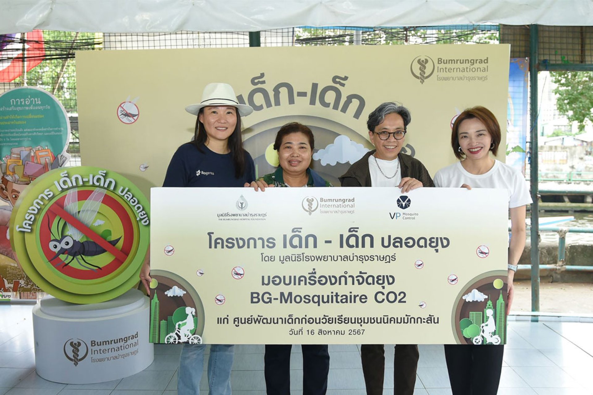 โรงพยาบาลบำรุงราษฎร์ และมูลนิธิโรงพยาบาลบำรุงราษฎร์ ร่วมกับ บริษัท วีพี มอสคีโต คอนโทรล จำกัด ตัวแทนจำหน่ายผลิตภัณฑ์ของ บริษัท ไบโอเจนท์ ผู้นำนวัตกรรมกำจัดยุงระดับโลก มอบเครื่องกำจัดยุง BG-Mosquitaire CO2 ที่มีประสิทธิภาพด้านเทคโนโลยีของไบโอเจนท์ ให้กับ ศูนย์พัฒนาเด็กก่อนวัยเรียน ชุมชนนิคมมักกะสัน เมื่อวันที่ 16 สิงหาคม 2567