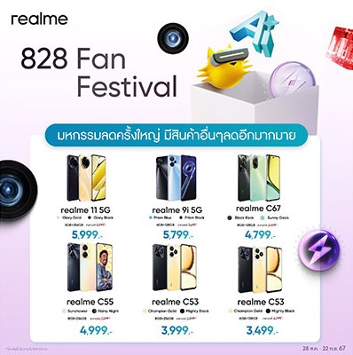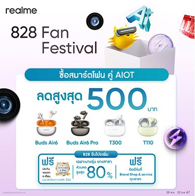 เตรียมตัวร่วมฉลองเทศกาล realme 828 Fan Festival realme พร้อมมอบส่วนลดแบบจุใจให้กับแฟน ๆ ผ่านแคมเปญ 828 Promotion