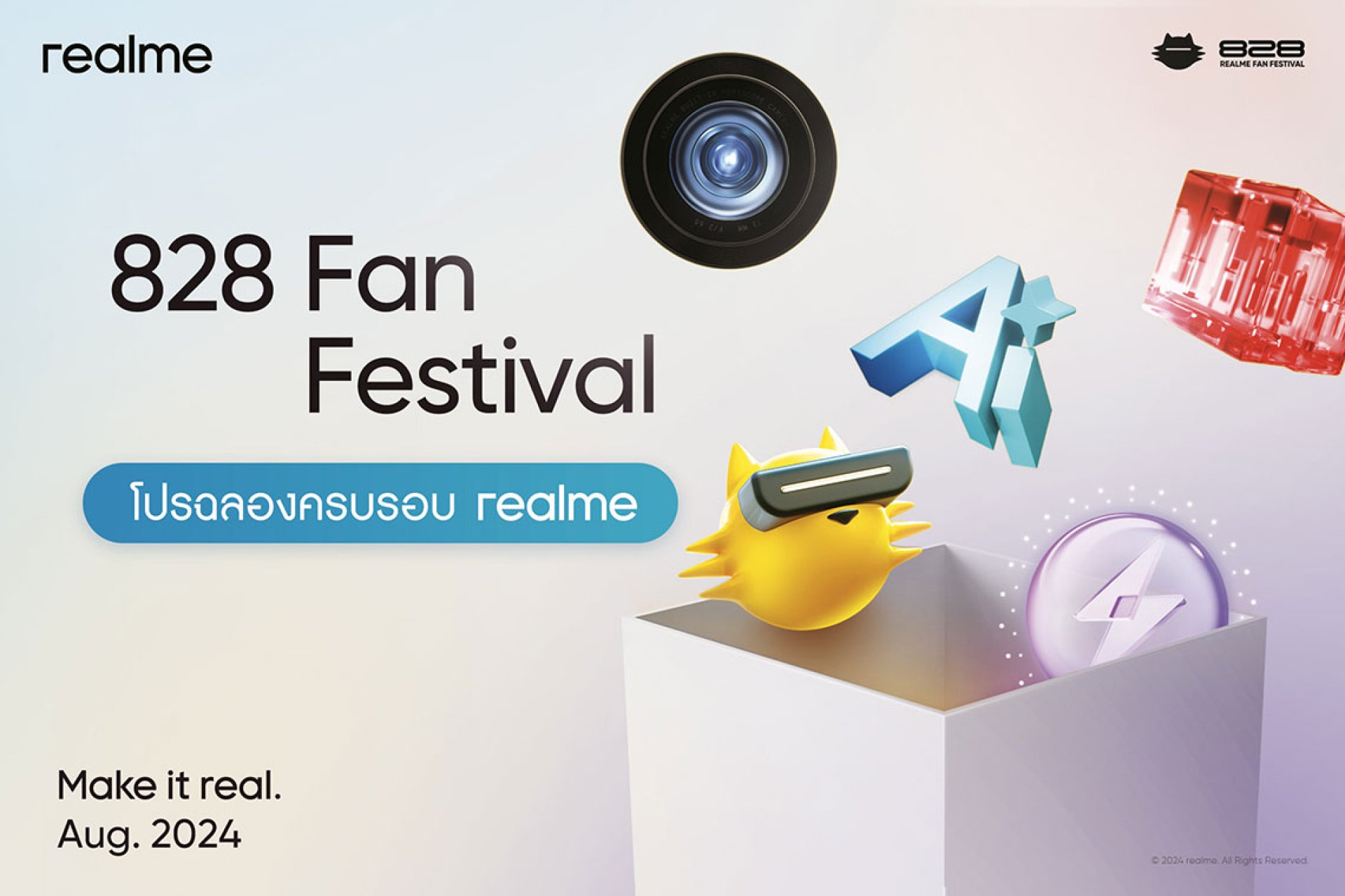 realme Thailand ปล่อยแคมเปญมอบความคุ้มค่าให้แก่แฟน ๆ ในเมืองไทยผ่าน 828 Promotion เพื่อร่วมฉลองไปกับเทศกาล realme 828 Fan Festival โดยตลอดระยะเวลาที่ผ่านมา เรียลมีได้มุ่งเน้นการพัฒนาผลิตภัณฑ์ควบคู่ไปกับการรับฟังความต้องการของผู้บริโภค รวมถึงเล็งเห็นว่ากลุ่มคนรุ่นใหม่มีความชอบและค่านิยมที่ชัดเจน ไม่ว่าจะเป็นนวัตกรรมที่ล้ำหน้า และดีไซน์ที่แปลกใหม่