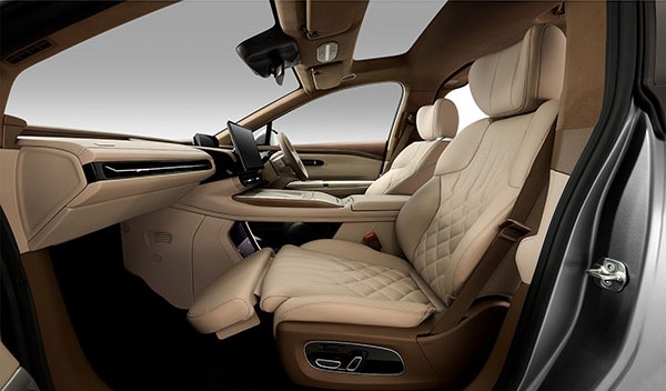 HYPTEC HT นำเสนอมิติใหม่ของความสะดวกสบายและความหรูหราเหนือระดับ ด้วยห้องโดยสารระดับเฟิร์สคลาสขนาดใหญ่พิเศษ เพื่อการพักผ่อนที่สะดวกสบาย เบาะนั่งโดยสารหุ้มด้วยวัสดุหนัง Nappa คุณภาพสูงและที่พักแขนทำจากวัสดุไม้แท้ ให้สัมผัสที่ดีเยี่ยม พร้อมด้วยฟีเจอร์เบาะรองน่องผู้โดยสารด้านหน้าปรับด้วยระบบไฟฟ้า พนักพิงเบาะหลังปรับเอนได้มากถึง 143 องศา ทำให้ผู้โดยสารสามารถนอนพักผ่อนได้อย่างสะดวกสบาย เพิ่มความสบายระหว่างการเดินทางด้วยที่รองขาสำหรับผู้โดยสารตอนหลัง ทำให้ผู้โดยสารสามารถเหยียดขาได้อย่างอิสระ ลดอาการเมื่อยล้าของขาและเท้าระหว่างการเดินทางไกล นอกจากนี้ยังมีโต๊ะอเนกประสงค์ในเบาะหลังคนขับดีไซน์โค้ง เพื่อลดอันตรายจากการกระแทกสำหรับเด็ก เบาะนวดไฟฟ้า 10 จุดคู่หน้า มอบความเพลิดเพลินจากการนวดระดับสปาด้วยโหมดการนวด 5 รูปแบบ