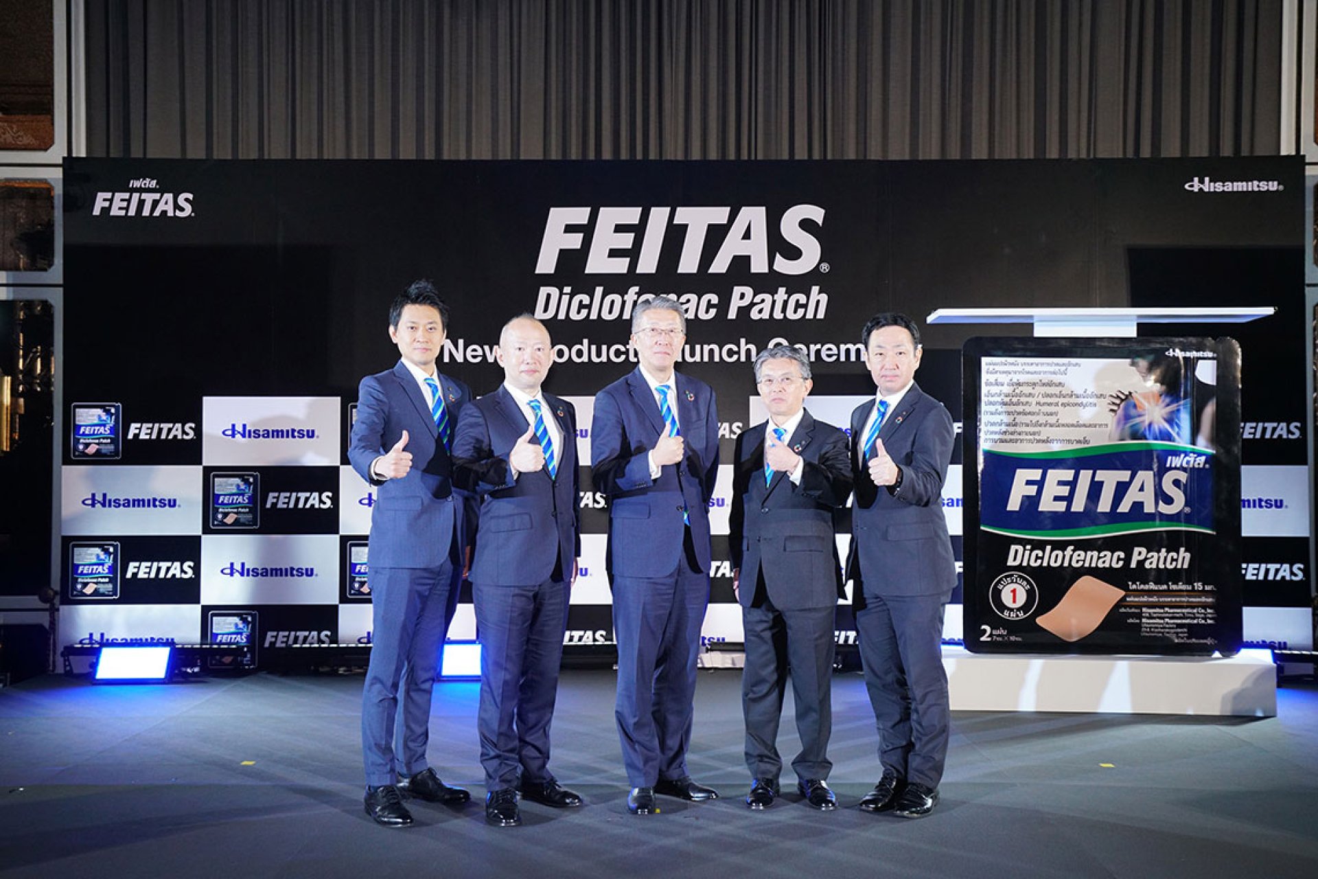 ฮิซามิทสึ ฟาร์มาซูติคอล ประเทศญี่ปุ่น บริษัทผู้ผลิตยาแก้ปวดภายนอก ในกลุ่มพลาสเตอร์บรรเทาปวดที่ไม่ต้องใช้ใบสั่งยาอันดับหนึ่งของโลก จัดงานแถลงข่าวเปิดตัวผลิตภัณฑ์ เฟตัส ไดโคลฟีแนค (FEITAS Diclofenac Patch) ครั้งแรกในประเทศไทยกับแผ่นแปะที่มีส่วนผสมของ ไดโคลฟีแนค สารสำคัญในกลุ่มยาแก้ปวด ซึ่งใช้ต้านการอักเสบกันอย่างแพร่หลายทั่วโลก นำมาสู่ความท้าทายครั้งใหม่ในการพัฒนาให้สามารถซึมผ่านผิวหนังเพื่อลดผลข้างเคียงที่น้อยลง โดยแผ่นแปะบรรเทาปวด เฟตัส ไดโคลฟีแนค นี้ มีประสิทธิภาพในการออกฤทธิ์สูงถึง 24 ชั่วโมง เหมาะสำหรับผู้ที่มีอาการกล้ามเนื้อปวดและอักเสบเรื้อรังชนิดรุนแรง และผู้ที่มีความเสี่ยงสูงต่อการแพ้ยาจากการใช้ยารับประทาน