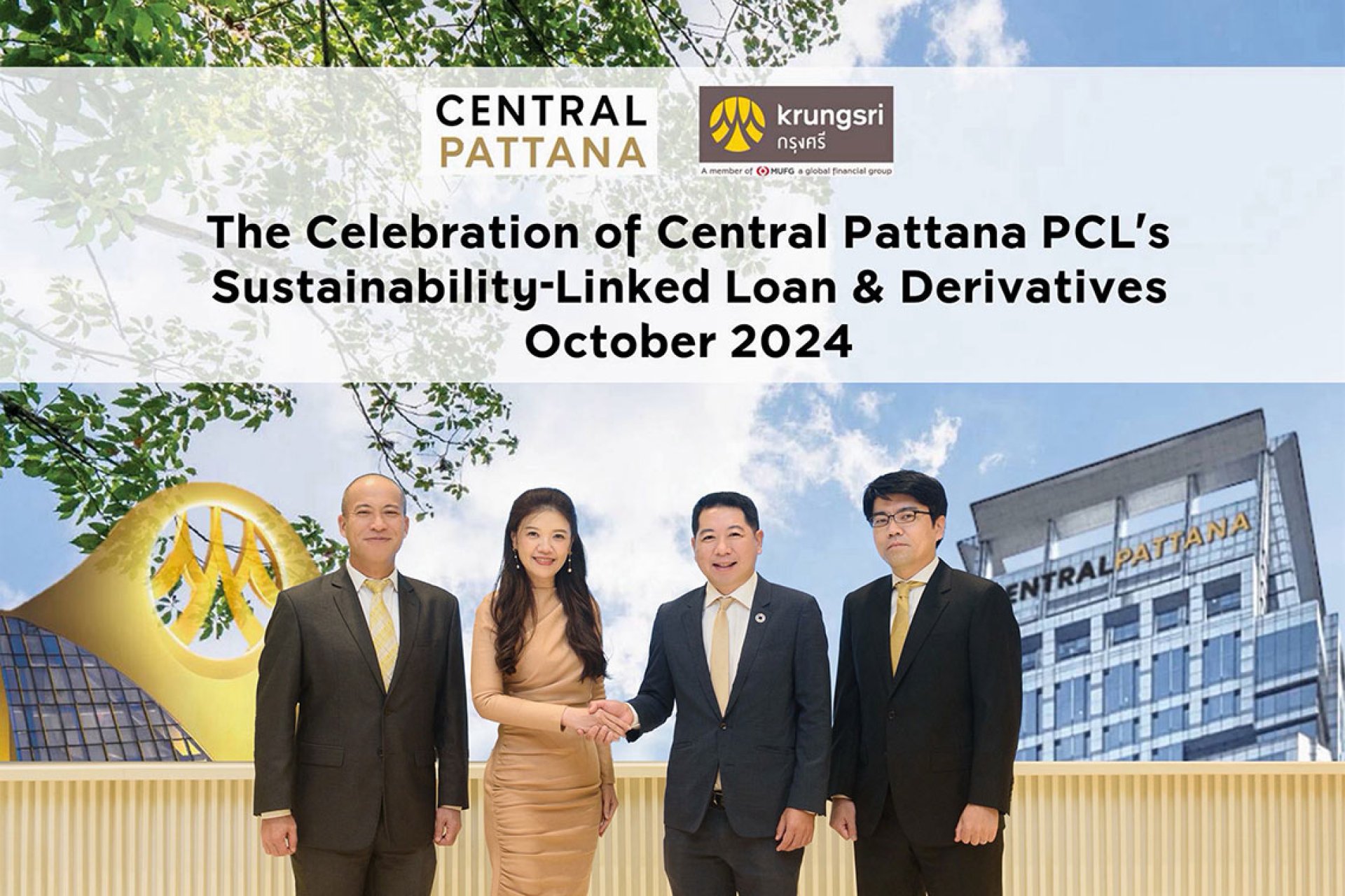 บริษัท เซ็นทรัลพัฒนา จำกัด (มหาชน) ผู้นำเบอร์หนึ่งอสังหาริมทรัพย์ไทยเพื่อความยั่งยืน และ กรุงศรี (ธนาคารกรุงศรีอยุธยา จำกัด (มหาชน) ผสานความร่วมมือครั้งสำคัญเพื่อเดินหน้าสู่เป้าหมายด้านความยั่งยืน ผ่านสินเชื่อที่เชื่อมโยงกับการดำเนินงานด้านความยั่งยืน (Sustainability-Linked Loan: SLL) และสัญญาอนุพันธ์ป้องกันความเสี่ยงทางการเงินที่เชื่อมโยงกับการดำเนินงานด้านความยั่งยืน (Sustainability-Linked Derivatives) โดยความร่วมมือครั้งนี้เป็นไปตามพันธกิจของเซ็นทรัลพัฒนาและกรุงศรี ที่ต้องการบรรลุเป้าหมายการลดการปล่อยก๊าซเรือนกระจกสุทธิเป็นศูนย์ในปี พ.ศ. 2593