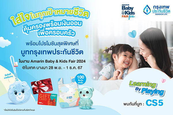 คุณพ่อคุณแม่ที่สนใจ สามารถพบกับแผนความคุ้มครองที่คัดสรรมาด้วยความใส่ใจ ตอบโจทย์ความต้องการทุกครอบครัวจากกรุงเทพประกันชีวิตได้ในงาน Amarin Baby & Kids Fair 2024 ได้ในระหว่างวันที่ 28 พฤศจิกายน ถึง 1 ธันวาคม ศกนี้ ที่ ไบเทค บางนา ฮอลล์ 103-104 บูท CS5 ระหว่าง 10.00 20.00 น. พบกับกิจกรรมเสริมสร้างพัฒนาการเรียนรู้ของลูกน้อย การวางแผนเตรียมพร้อมด้านสุขภาพ ค่ารักษาพยาบาล และเตรียมเงินออมเพื่อเป็นทุนการศึกษาให้ลูกรัก พร้อมให้คำปรึกษาวางแผนการเงินกับคุณพ่อคุณแม่ตามเป้าหมายที่ต้องการ พิเศษในวันเสาร์ที่ 30 พฤศจิกายน เวลา 13:30 น. ร่วมฟังเสวนาห้องเรียนพ่อแม่ โดย ผศ.ดร.ปนัดดา ธนเศรษฐกร ผู้เชี่ยวชาญด้านเทคนิคการสร้างวินัยเชิงบวกและการส่งเสริมทักษะสมอง EF สถาบันแห่งชาติเพื่อการพัฒนาเด็กและครอบครัว มหาวิทยาลัยมหิดล พร้อมโปรโมชันสุดพิเศษภายในงาน และโปรโมชันอื่น ๆ อีกมากมายศึกษาเพิ่มเติมได้ที่ https://www.bangkoklife.com/th/promotion