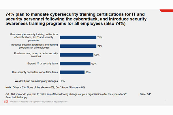 - บรรดาผู้นำเชื่อว่าการได้รับการรับรอง เป็นการช่วยปรับปรุงมาตรการรักษาความปลอดภัยได้ดียิ่งขึ้น ผู้ตอบแบบสอบถามให้ความสำคัญกับใบรับรองในประเทศไทย โดย 92% กล่าวว่ายินดีจ่ายเงินเพื่อให้พนักงานได้รับการรับรองด้านความปลอดภัยทางไซเบอร์