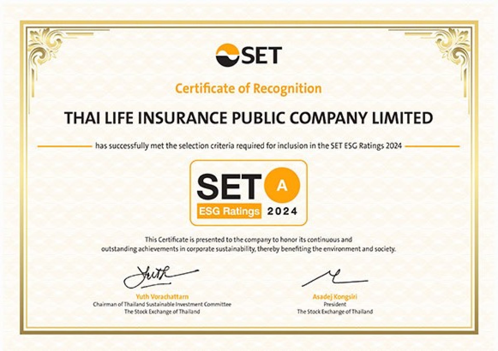 ไทยประกันชีวิต ได้รับการจัดอันดับหุ้นยั่งยืน SET ESG Ratings 2024 ด้วยระดับ “A”