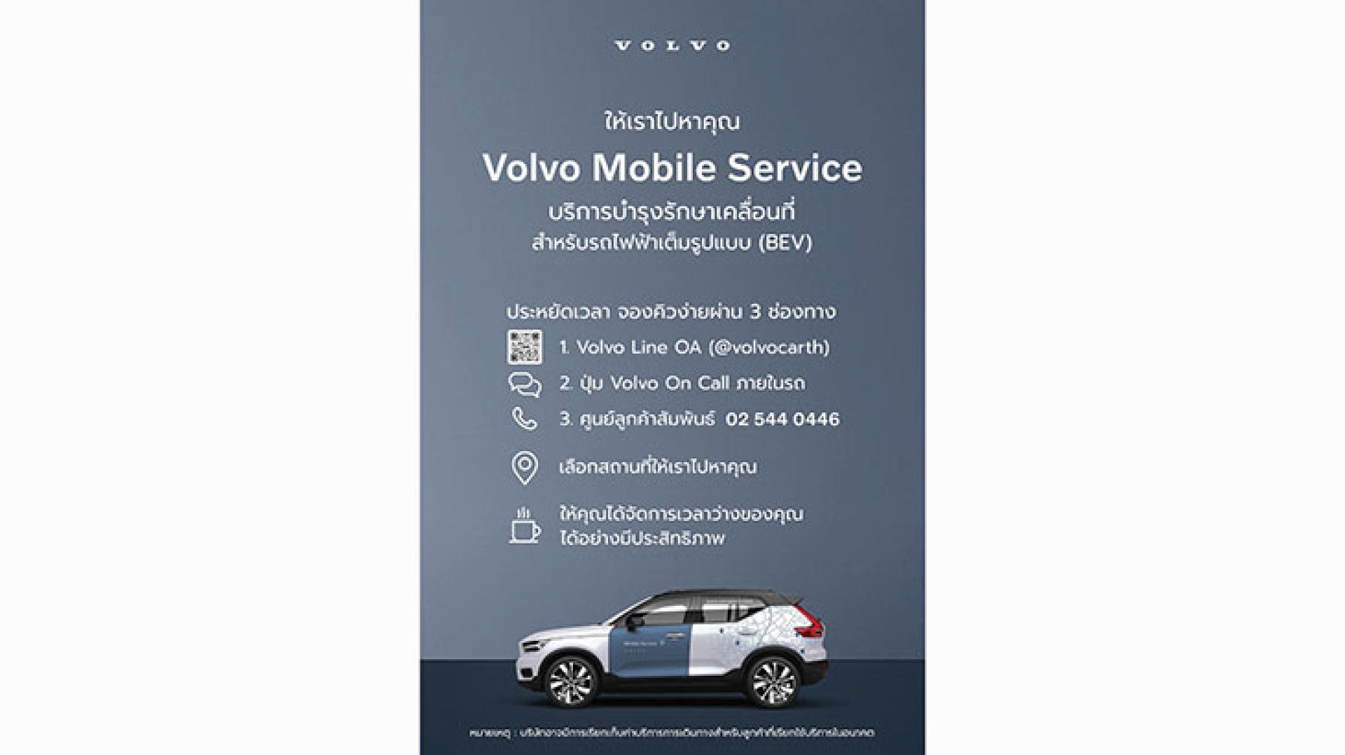 ผู้สนใจสามารถศึกษารายละเอียดของบริการ Volvo Mobile Service เพิ่มเติม ได้ที่ https://bit.ly/3XChnKd
