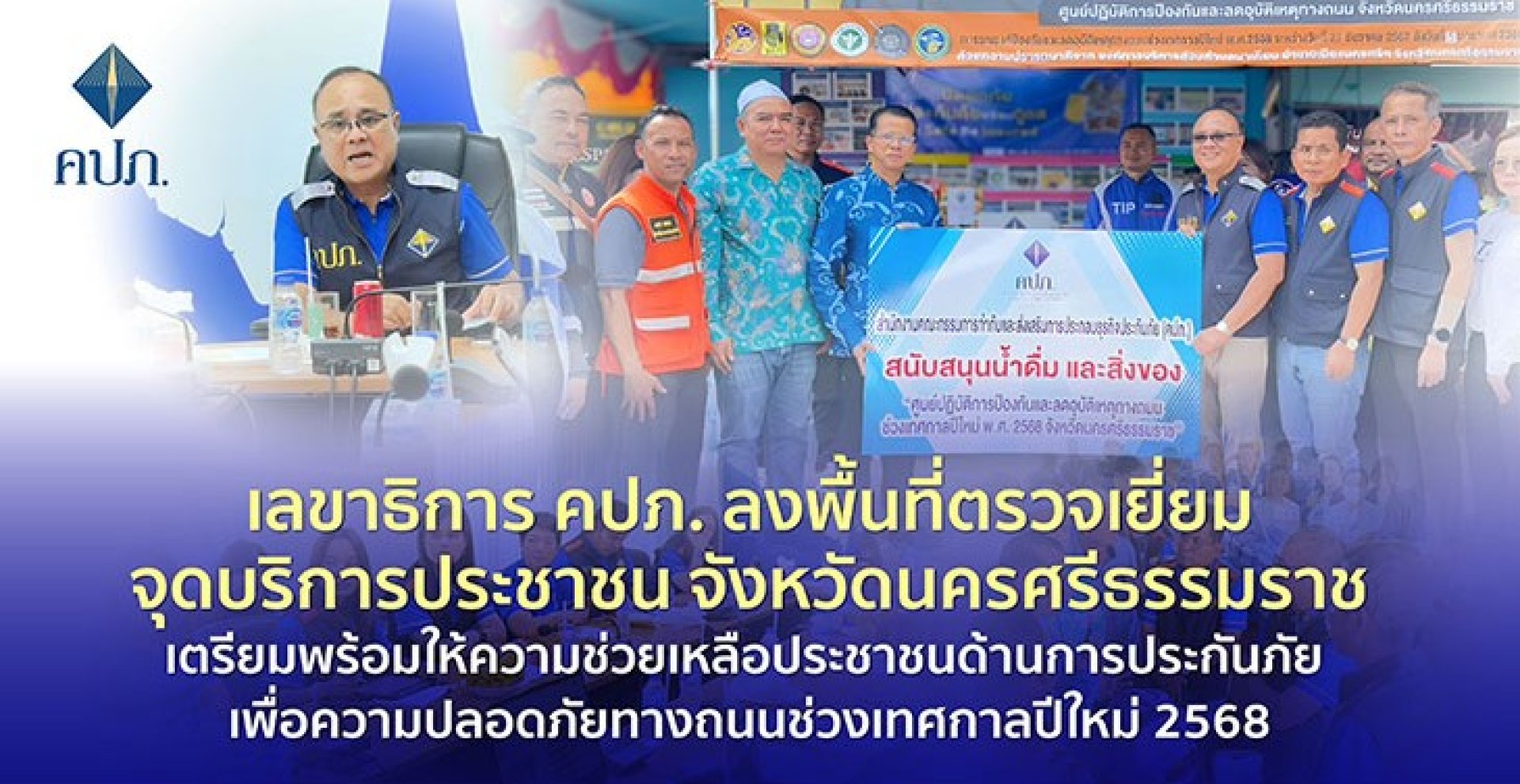 เลขาธิการ คปภ. ลงพื้นที่ตรวจเยี่ยมจุดบริการประชาชน จังหวัดนครศรีธรรมราช เตรียมพร้อมให้ความช่วยเหลือประชาชนด้านการประกันภัย เพื่อความปลอดภัยทางถนนช่วงเทศกาลปีใหม่ 2568