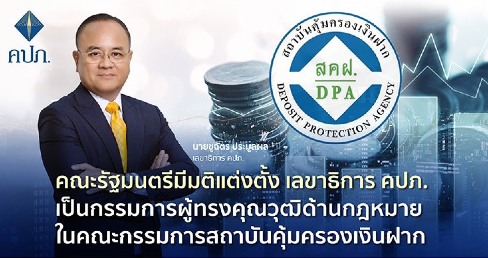 คณะรัฐมนตรีมีมติแต่งตั้ง เลขาธิการ คปภ. เป็นกรรมการผู้ทรงคุณวุฒิด้านกฎหมาย ในคณะกรรมการสถาบันคุ้มครองเงินฝาก