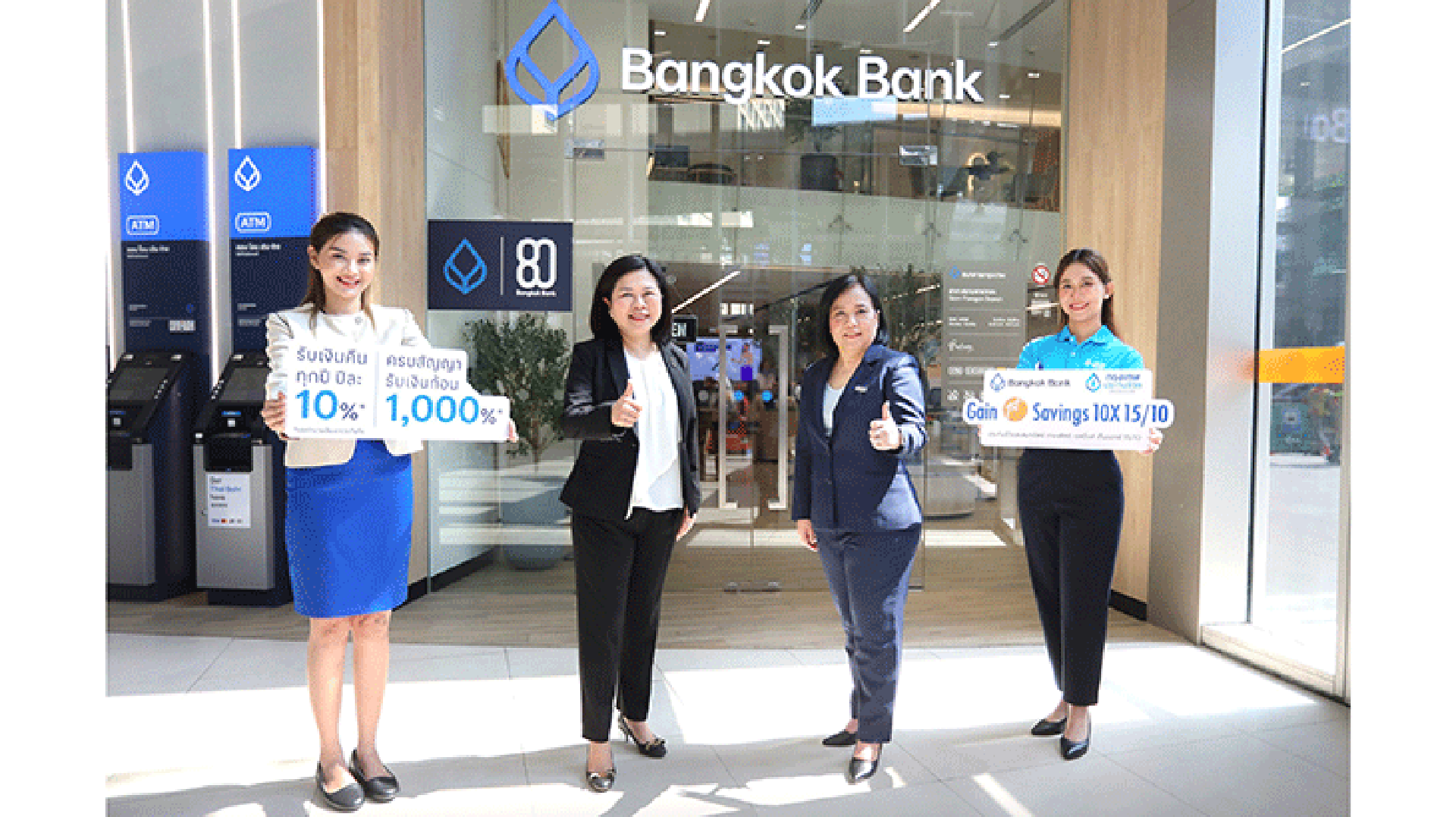 กรุงเทพประกันชีวิต จับมือธนาคารกรุงเทพ เปิดตัวประกันสะสมทรัพย์ใหม่ เกนเฟิสต์ เซฟวิ่งส์ เท็นเอกซ์ 15/10 (Gain1st Saving 10X 15/10) เจาะกลุ่มคนทำงานโดยเฉพาะผู้บริหารระดับกลางถึงระดับสูง รวมทั้งเจ้าของธุรกิจรุ่นใหม่ ที่ต้องการสร้างความมั่นคงผ่านการวางแผนการเงิน ด้วยจุดเด่นจ่ายเบี้ยเพียง 10 ปี คุ้มครองถึง 15 ปี ให้ผลประโยชน์เป็นเงินคืนทุกปี ปีละ 10% ของทุนประกัน และมีเงินคืนก้อนใหญ่เมื่อครบกำหนดสัญญา ครอบคลุมความคุ้มครองชีวิต และเพิ่มเติมกรณีเสียชีวิตจากอุบัติเหตุสูงสุด 1050% รวมผลประโยชน์สูงสุด 2,100%
