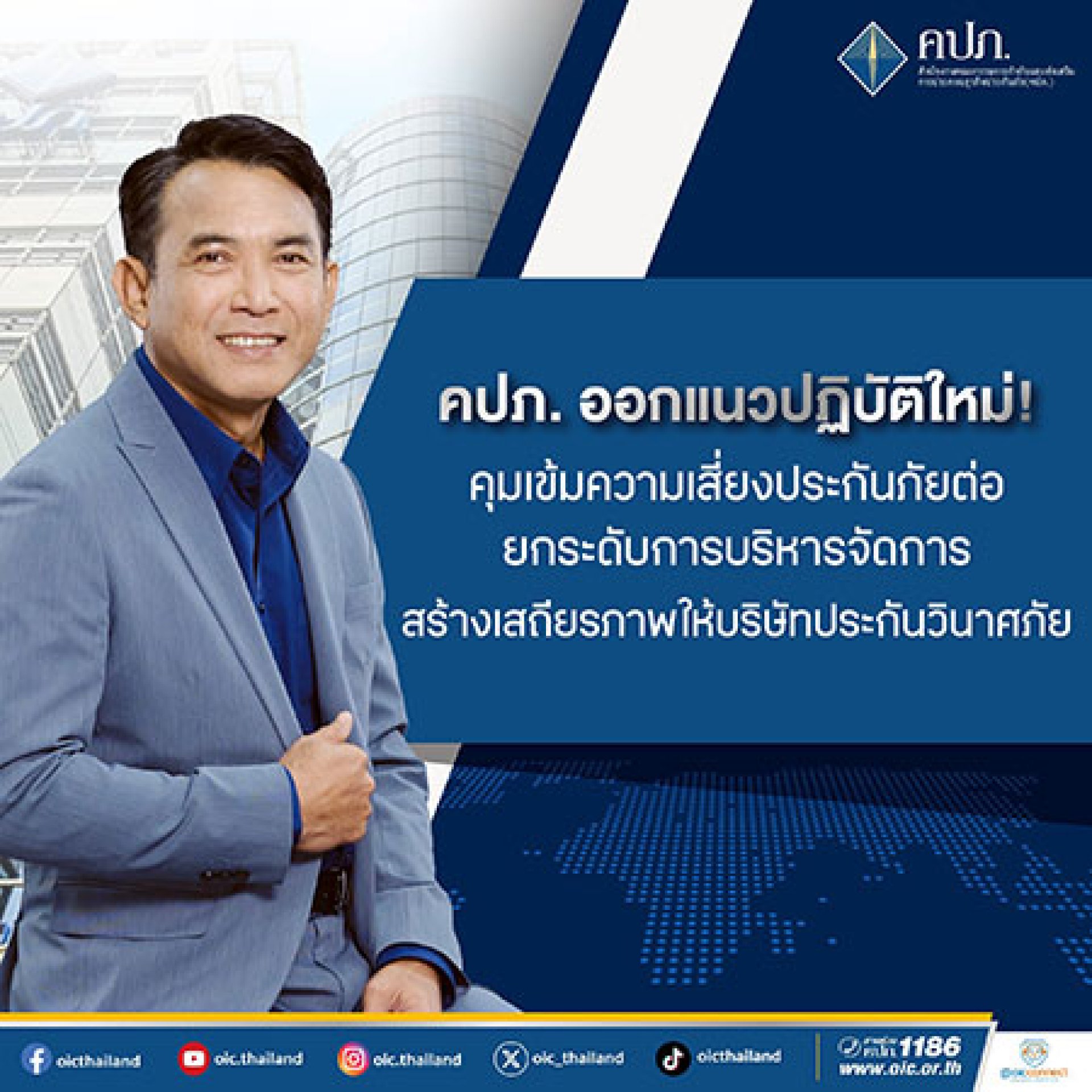 คปภ. ออกแนวปฏิบัติใหม่ คุมเข้มความเสี่ยงประกันภัยต่อ ยกระดับการบริหารจัดการ สร้างเสถียรภาพให้บริษัทประกันวินาศภัย