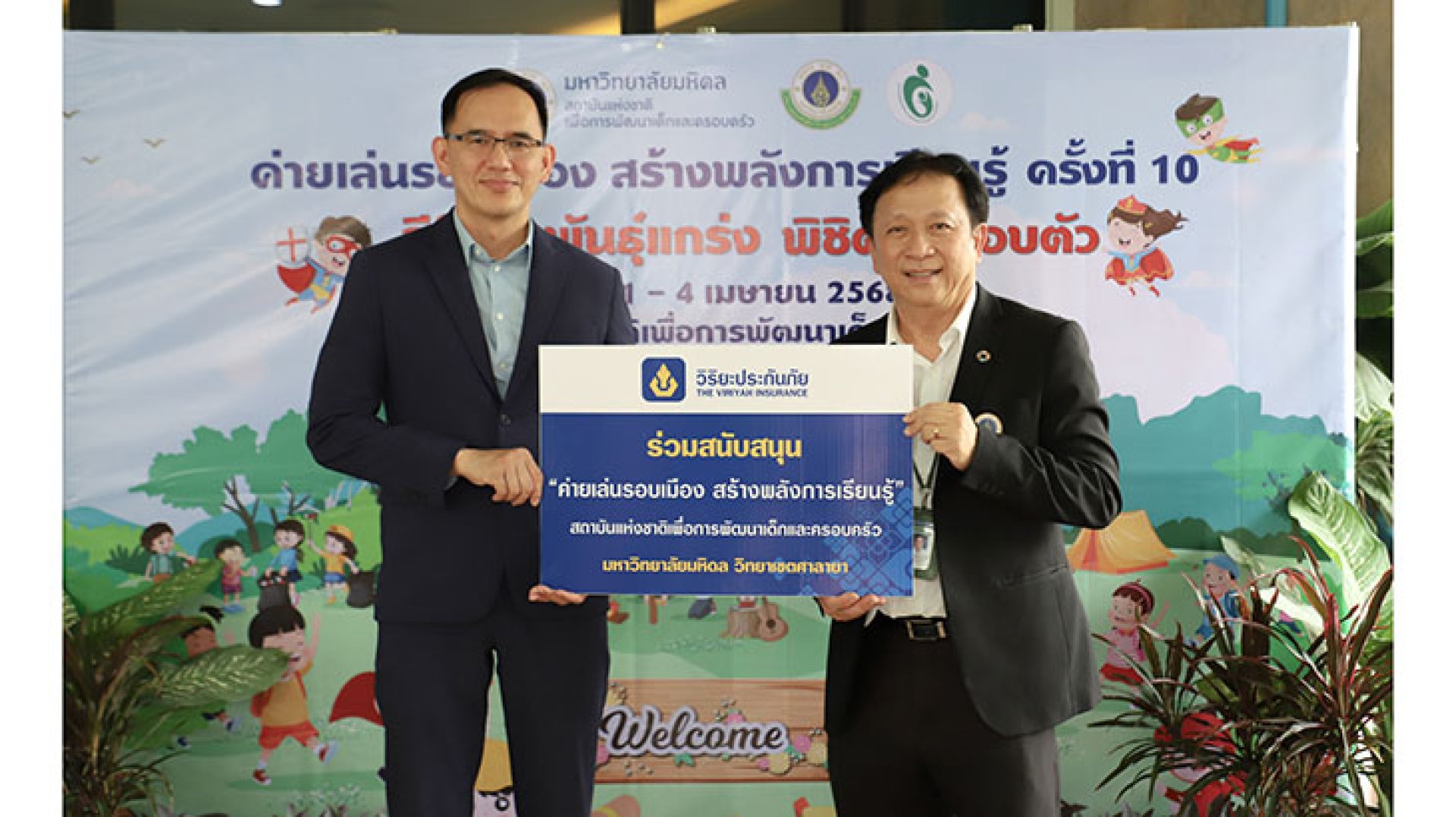 รศ. นพ. อดิศักดิ์ ผลิตผลการพิมพ์ ผู้อำนวยการ สถาบันแห่งชาติเพื่อการพัฒนาเด็กและครอบครัว มหาวิทยาลัยมหิดล รับมอบงบประมาณการพัฒนากลุ่มเด็กเปราะบาง และน้ำดื่ม จำนวน 1,500 ขวด จาก บริษัท วิริยะประกันภัย จำกัด (มหาชน) โดยมี นายพงศ์พันธ์ ประภาศิริลักษณ์ ผู้จัดการฝ่ายสื่อสารองค์กร เป็นผู้แทนมอบ เพื่อสนับสนุนการดำเนินกิจกรรม ค่ายเล่นรอบเมือง สร้างพลังการเรียนรู้ ครั้งที่ 10 ตอน ฮีโร่จิ๋ว พันธุ์แกร่ง พิชิตภัยรอบตัว ซึ่งเป็นโครงการที่ช่วยเสริมสร้างประสบการณ์การเรียนรู้สำหรับเด็ก เกี่ยวกับทักษะการใช้ชีวิตประจำวัน การพัฒนาอารมณ์ จิตใจ และการใช้ชีวิตร่วมกับผู้อื่นในสังคม ตลอดจนการอนุรักษ์สิ่งแวดล้อมรอบตัว ผ่านกิจกรรมการเล่นอย่างสร้างสรรค์ ณ สถาบันแห่งชาติเพื่อการพัฒนาเด็กและครอบครัว มหาวิทยาลัยมหิดล วิทยาเขตศาลายา จังหวัดนครปฐม