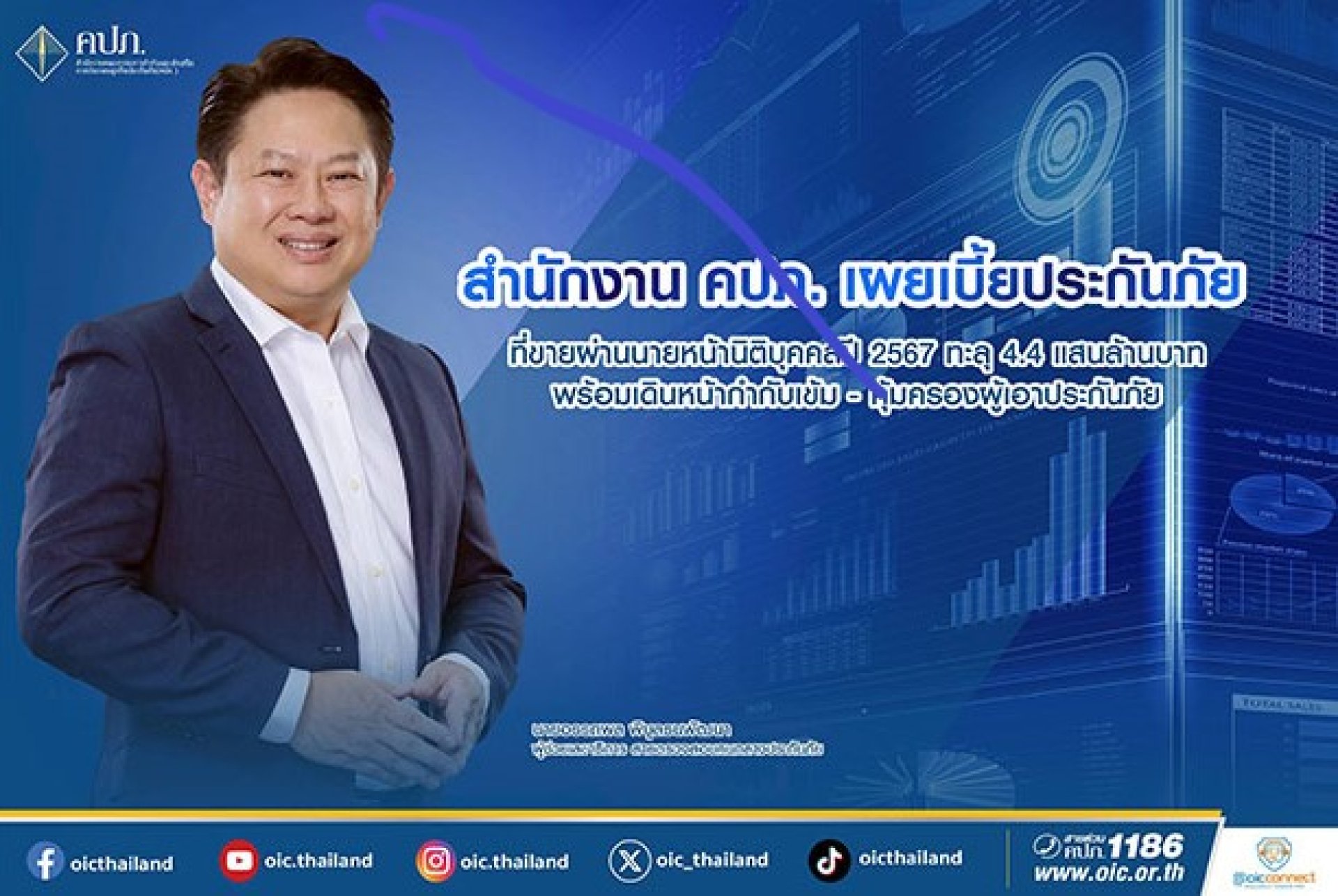 สำนักงาน คปภ. เผยเบี้ยประกันภัยที่ขายผ่านนายหน้านิติบุคคลปี 2567 ทะลุ 4.4 แสนล้านบาท พร้อมเดินหน้ากำกับเข้ม - คุ้มครองผู้เอาประกันภัย
