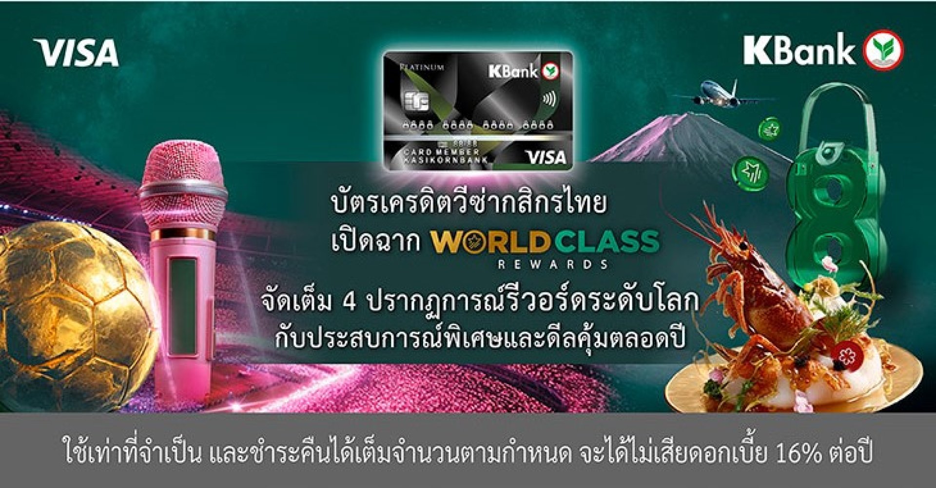 พบกับปรากฎการณ์รีวอร์ดระดับโลก World Class Rewards กับบัตรเครดิตวีซ่ากสิกรไทย ต่อเนื่องตลอดทั้งปี