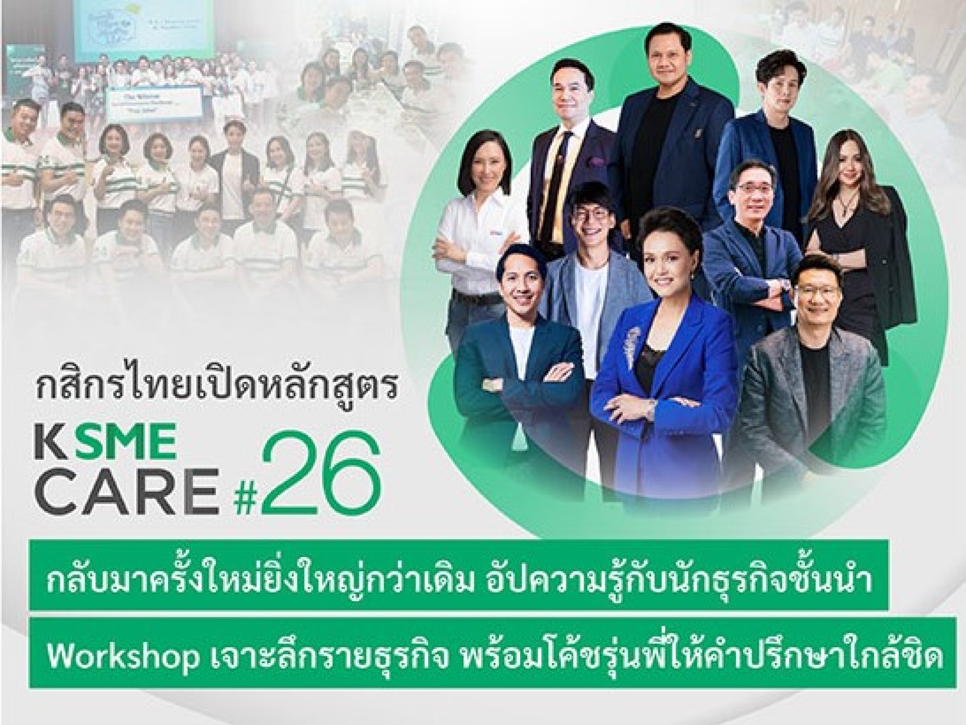 กสิกรไทยเปิดหลักสูตร K SME CARE รุ่น 26 กลับมาครั้งใหม่ยิ่งใหญ่กว่าเดิม ยกระดับความรู้กับ 10 นักธุรกิจชั้นนำ เจาะลึกรายอุตสาหกรรม พร้อมโค้ชรุ่นพี่ให้คำปรึกษา เสริมแกร่ง SME ให้โตไปได้อีก