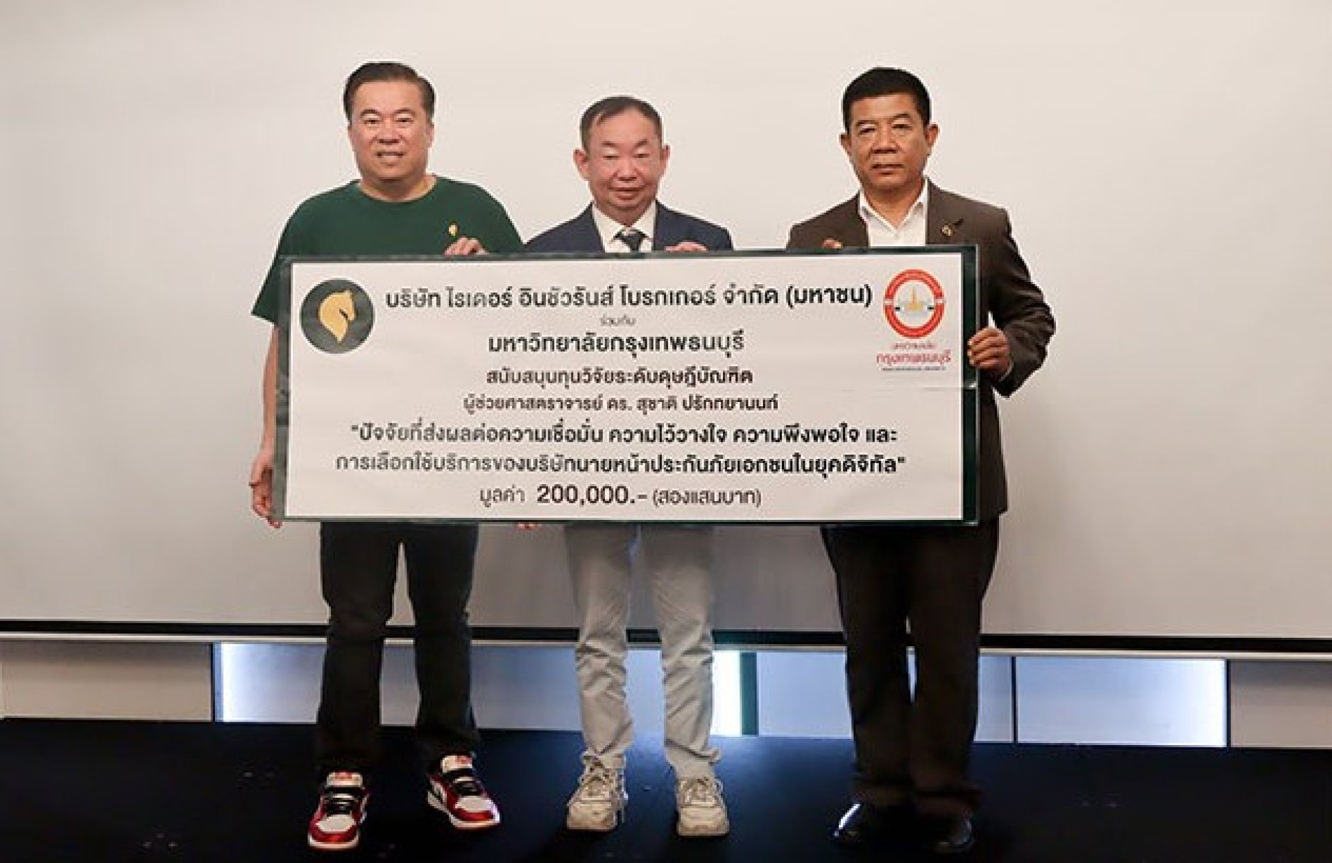 “ไรเดอร์ อินชัวรันส์ โบรกเกอร์” จับมือ ม.กรุงเทพธนบุรี มอบทุนวิจัย 2 แสนบาท พัฒนาองค์ความรู้ด้านประกันภัยยุคดิจิทัล มุ่งสู่ระบบ InsurTech อย่างยั่งยืน