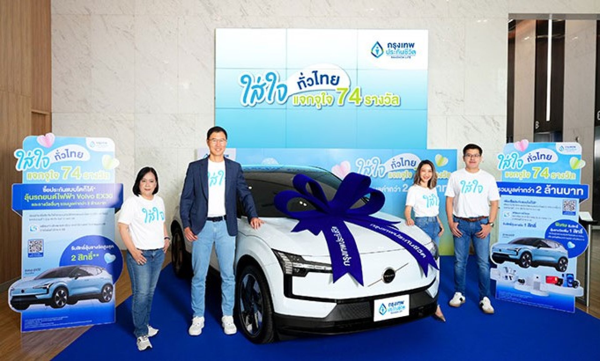 กรุงเทพประกันชีวิต ฉลองครบรอบ 74 ปี จัดแคมแปญแห่งปี “ใส่ใจทั่วไทย แจกจุใจ 74 รางวัล” มอบรถยนต์ไฟฟ้า Volvo EX30 มูลค่า 1,540,000 บาท