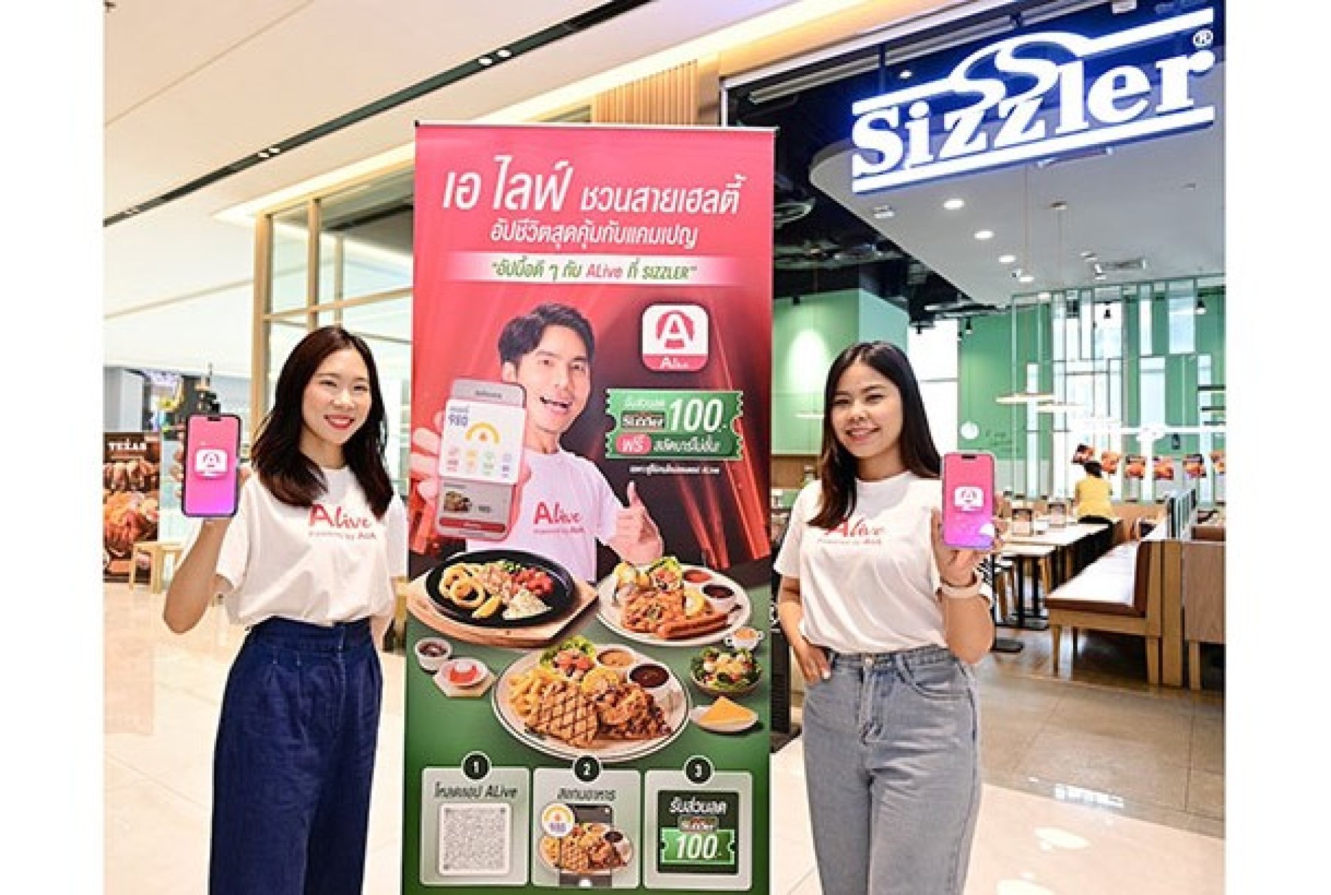 ปฏิเสธไม่ได้ว่าคนยุคใหม่หันมาให้ความสำคัญกับการดูแลสุขภาพทั้งทางร่างกายและจิตใจกันมากขึ้น ซึ่งทำให้ไลฟ์สไตล์การรับประทานอาหารของคนยุคนี้เริ่มเปลี่ยนไป หลาย ๆ คนต้องการมื้ออาหารที่ได้ทั้งความอร่อยและประโยชน์ครบจบในมื้อเดียว ALive Powered by AIA (เอ ไลฟ์ พาวเวอร์ บาย เอไอเอ) แอปพลิเคชันเพื่อสุขภาพและความเป็นอยู่ที่ดีของทุกคนในครอบครัว จึงจับมือกับ Sizzler (ซิซซ์เล่อร์) สเต๊กเฮาส์และสลัดบาร์ชั้นนำของเมืองไทยที่มีสาขามากถึง 64 สาขา เปิดตัวแคมเปญสุดพิเศษ อัปมื้อดี ๆ กับ ALive ที่ Sizzler ชวนคนรักสุขภาพมาเติมเต็มไลฟ์สไตล์เฮลตี้ได้ง่าย ๆ กับการใช้ฟีเจอร์ Food Tracker* ผ่านแอป ALive ที่ร้าน Sizzler ทุกสาขาทั่วประเทศ พร้อมรับคูปองส่วนลด 100 บาท สำหรับ 5 เมนูที่ร่วมรายการ ตั้งแต่วันที่ 1 มิถุนายน 31 กรกฎาคม 2568