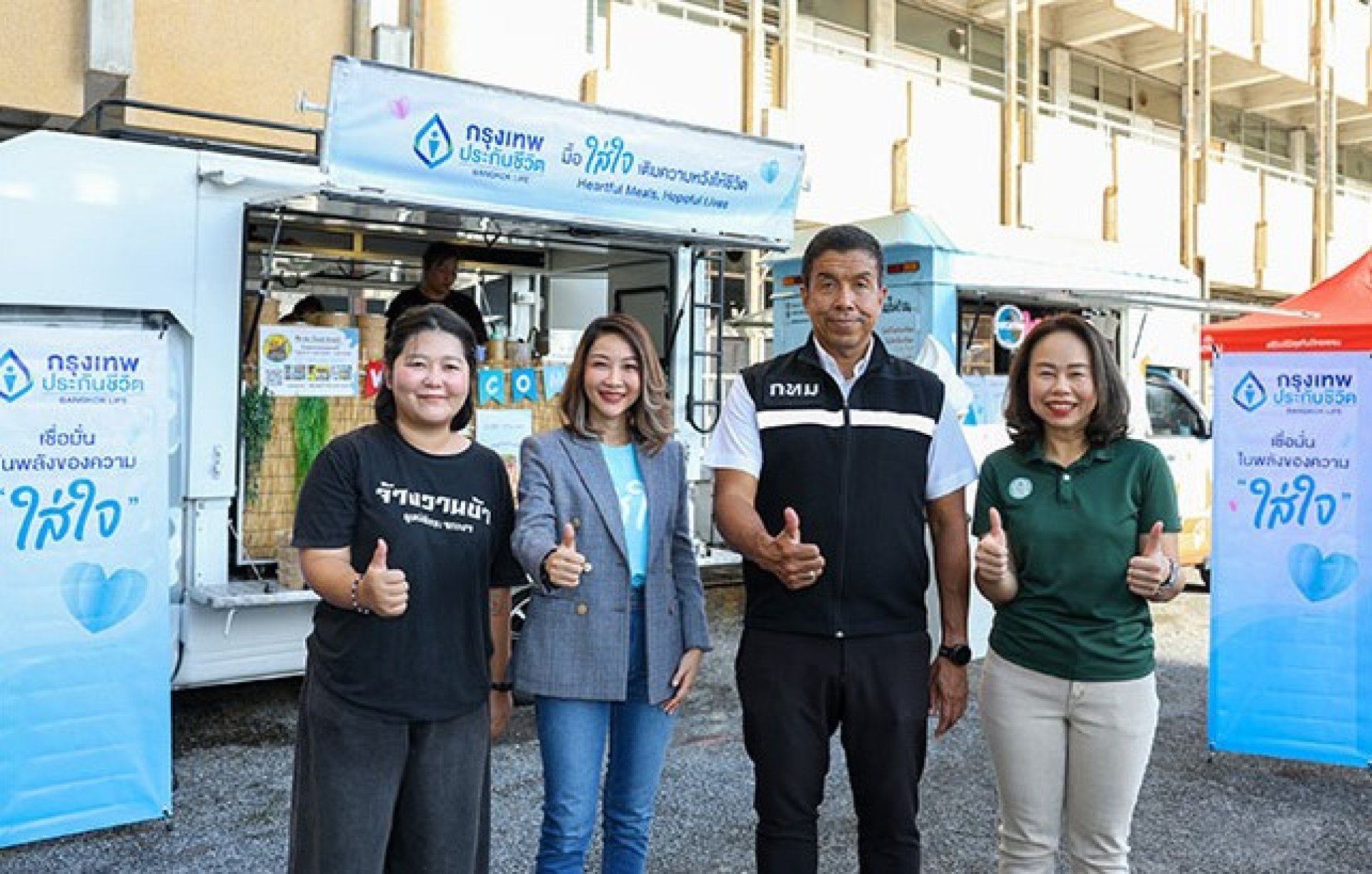 โอกาสนี้ บริษัท กรุงเทพประกันชีวิต จำกัด (มหาชน) เข้าร่วมเป็นส่วนหนึ่งด้วยการสนับสนุนในโครงการ "Heartful Meals, Hopeful Lives หรือ มื้อใส่ใจ เติมความหวังให้ชีวิต" ให้คนไร้บ้านได้มีโอกาสเลือกมื้ออาหารที่อยากทาน โดยจัดเตรียม Food Truck 3 คัน มอบอาหาร 4 เมนูให้เลือก เป็นข้าวกระเพราไก่ไข่ดาว ข้าวหมูทอดทงคัตสึ เย็นตาโฟ และก๋วยเตี๋ยวต้มยำ รวมทั้งยังมีไอศกรีมซอฟท์เสิร์ฟรสวนิลาและโยเกิร์ต ให้คนไร้บ้านกว่า 300 คนที่แวะเวียนเข้ามา รวมถึงทีมแพทย์ พยาบาล และอาสาสมัครจากมูลนิธิกระจกเงา พร้อมทั้งยังเตรียมวงดนตรี พนักงานจิตอาสา ร่วมแสดงดนตรี ส่งมอบความสุข และความสนุกตลอดทั้งงาน ซึ่งถือเป็นความร่วมมือของทั้ง 3 องค์กร ได้แก่ กรุงเทพมหานคร กรุงเทพประกันชีวิต และมูลนิธิกระจกเงา ในการสร้างสรรค์กิจกรรมดีๆ เพื่อสังคม
