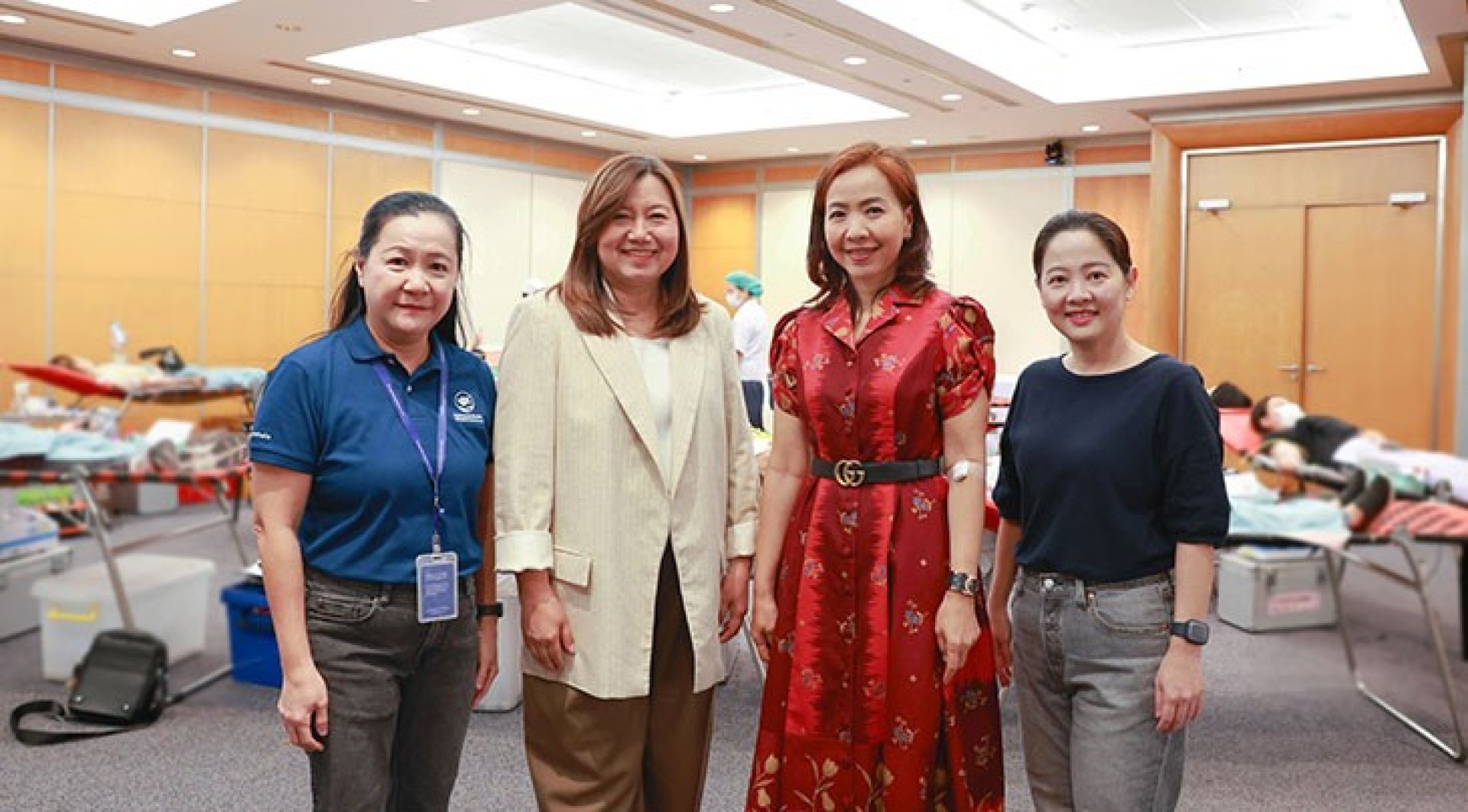 บริษัท กรุงเทพประกันภัย จำกัด (มหาชน) เดินหน้าส่งเสริมคุณภาพชีวิตที่ดีเพื่อสังคม จัดกิจกรรมบริจาคโลหิต เพื่อมอบให้แก่สภากาชาดไทยอย่างต่อเนื่อง โดยนางสาวปวีณา จูชวน (ที่ 2 จากซ้าย) ผู้อำนวยการใหญ่ ให้กำลังใจและกล่าวขอบคุณพนักงาน ลูกค้า คู่ค้า รวมถึงประชาชนทั่วไปที่ร่วมบริจาคโลหิต ณ อาคารกรุงเทพประกันภัย ถนนสาทรใต้ เมื่อวันที่ 19 มิถุนายน 2568