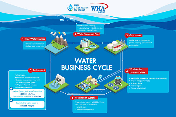 โดยในปี พ.ศ. 2568 WHA Group ได้ตอกย้ำโครงการ WHA Clean Water for Planet : Powering Industry, Sustaining Life ซึ่งเป็นต้นแบบการจัดการน้ำอย่างยั่งยืนที่เชื่อมโยงอุตสาหกรรม ชุมชน และสังคมเข้าด้วยกัน โดยไม่เพียงแค่มุ่งเน้นการจัดหาและบำบัดน้ำ แต่สร้าง "ระบบนิเวศน้ำที่ยั่งยืน" ที่ครอบคลุมตั้งแต่ภาคอุตสาหกรรมจนถึงชุมชน พร้อมขยายผลสู่พื้นที่อื่นๆ เพื่อสร้างความมั่นคงทางทรัพยากรน้ำ และรองรับการเติบโตทางเศรษฐกิจอย่างสมดุล ท่ามกลางความท้าทายด้านสิ่งแวดล้อมที่ภาคอุตสาหกรรมทั่วโลกกำลังเผชิญ ไม่ว่าจะเป็นการเปลี่ยนแปลงสภาพภูมิอากาศ การขาดแคลนน้ำ กฎระเบียบที่เข้มงวดยิ่งขึ้น และการใช้ทรัพยากรน้ำอย่างไม่มีประสิทธิภาพ โครงการนี้จึงมุ่งสู่การใช้ทรัพยากรน้ำให้เกิดความคุ้มค่าและประสิทธิภาพสูงสุด และทำให้การจัดการน้ำอย่างยั่งยืนกลายเป็นหัวใจสำคัญของการพัฒนาเศรษฐกิจ และสังคมใน ยุคปัจจุบัน
