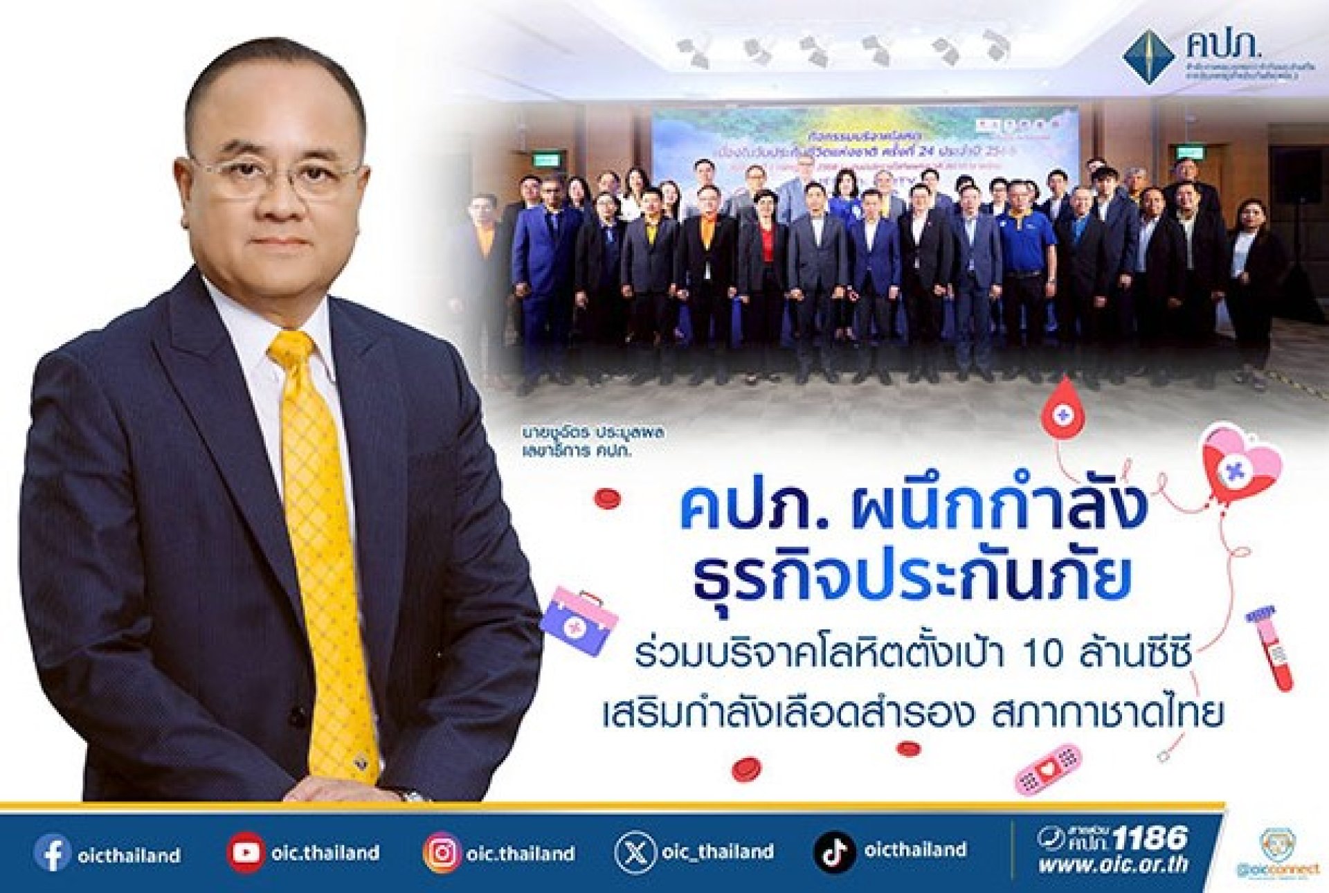 คปภ. ผนึกกำลังธุรกิจประกันภัย ร่วมบริจาคโลหิต ตั้งเป้า 10 ล้านซีซี เสริมกำลังเลือดสำรอง สภากาชาดไทย