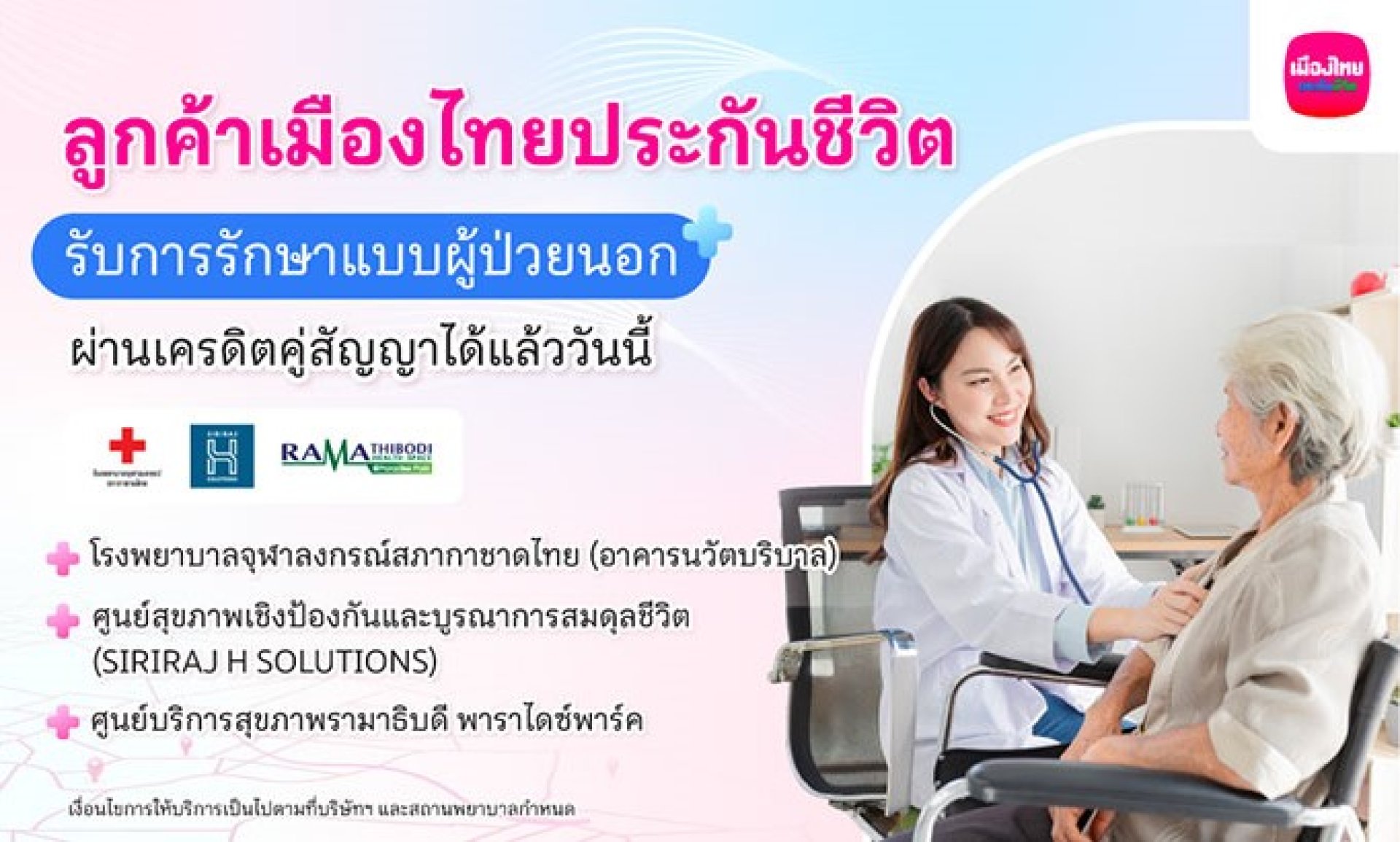 เมืองไทยประกันชีวิต มุ่งมั่นยกระดับประสบการณ์การดูแลสุขภาพลูกค้าอย่างต่อเนื่อง ล่าสุด เปิดให้บริการ ยื่นเคลมผู้ป่วยนอก (OPD) แบบไม่ต้องสำรองจ่าย ผ่านระบบเครดิตคู่สัญญา (Cashless Claim) กับสถานพยาบาลชั้นนำ เพื่อมอบความสะดวกสบาย อุ่นใจกับค่ารักษาพยาบาล พร้อมเปิดตัว 3 พันธมิตรใหม่ เพิ่มความมั่นใจให้แก่ลูกค้าทุกช่วงเวลาของการดูแลสุขภาพ