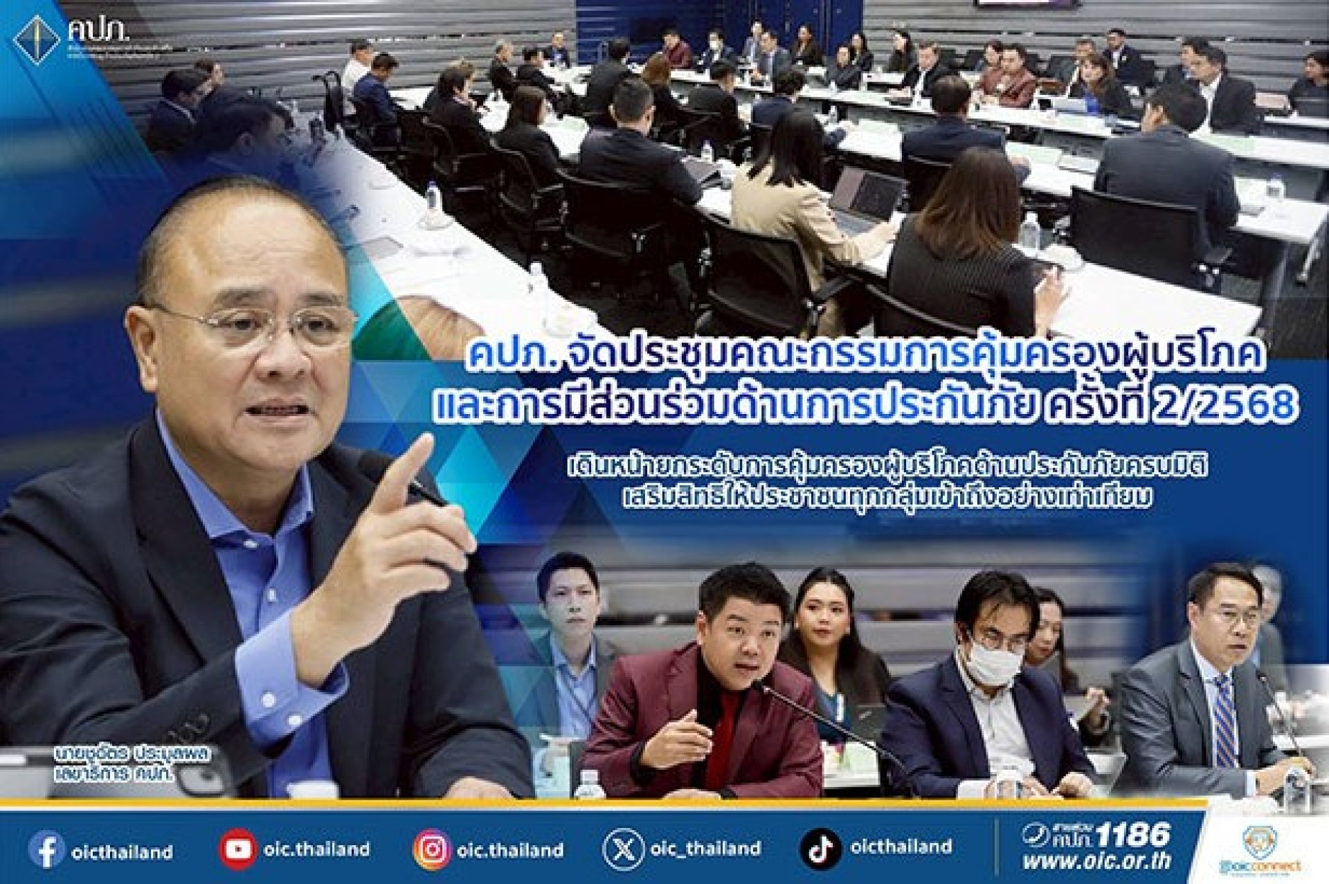 สำนักงาน คปภ. จัดประชุมคณะกรรมการคุ้มครองผู้บริโภคและการมีส่วนร่วมด้านการประกันภัย ครั้งที่ 2/2568 เดินหน้ายกระดับ 3 มาตรการ คุ้มครองผู้บริโภคด้านประกันภัยครบมิติทั้ง “เร่งรัดการเยียวยา-พัฒนากระบวนการลดเรื่องร้องเรียน-ยกระดับระบบคุ้มครองผู้ประสบภัยจากรถ”