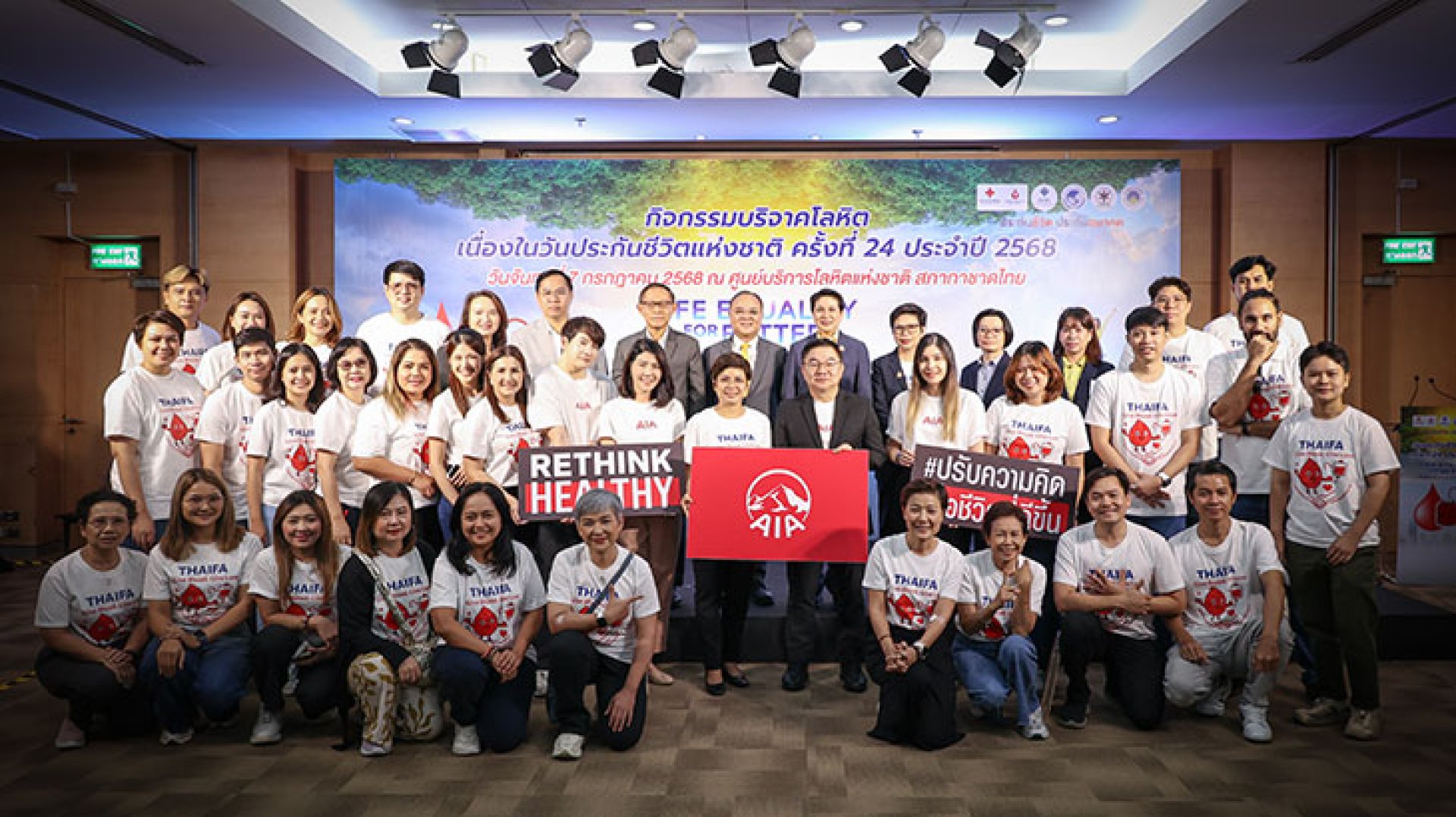 เอไอเอ ประเทศไทย นำโดย นายสุวิรัช พงศ์เสาวภาคย์ (ที่ 6 จากขวา แถวกลาง) ผู้อำนวยการฝ่ายกิจการภายนอก นำทีมพลังตัวแทนและเพื่อนพนักงานเอไอเอ จำนวนกว่า 60 คน ร่วมกิจกรรมบริจาคโลหิต เนื่องในวันประกันชีวิตแห่งชาติ ครั้งที่ 24 ประจำปี 2568 โดยได้รับเกียรติจาก นายชูฉัตร ประมูลผล เลขาธิการคณะกรรมการกํากับและส่งเสริมการประกอบธุรกิจประกันภัย (คปภ.) เป็นประธานในพิธี พร้อมกับร่วมถ่ายภาพเป็นที่ระลึก ณ สภากาชาดไทย ถนนอังรีดูนังต์ เมื่อวันจันทร์ที่ 7 กรกฎาคม ที่ผ่านมา