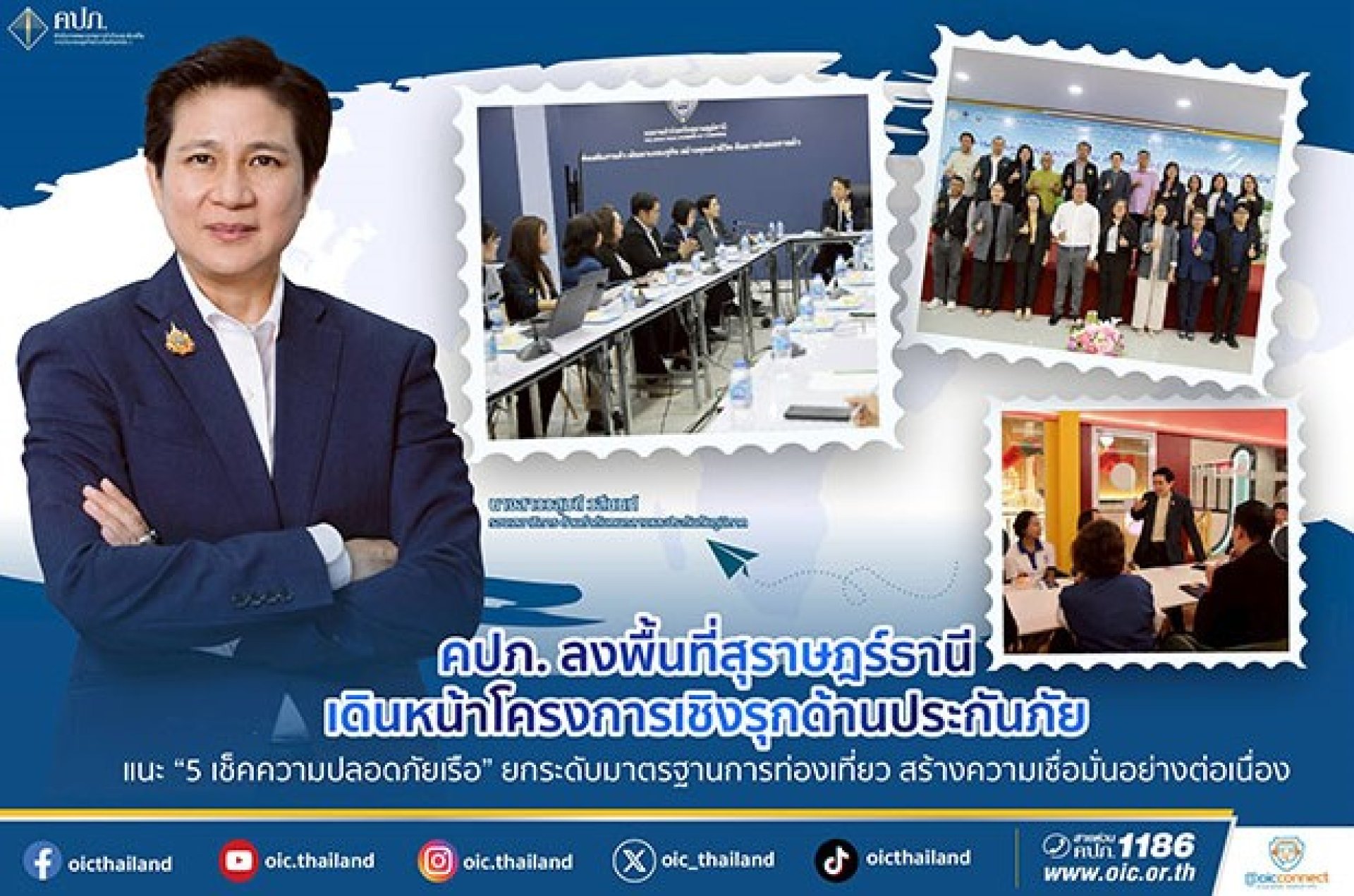 คปภ. ลงพื้นที่สุราษฎร์ธานี เดินหน้าโครงการเชิงรุกด้านประกันภัย แนะ “5 เช็คความปลอดภัยเรือ” ยกระดับมาตรฐานการท่องเที่ยว สร้างความเชื่อมั่นอย่างต่อเนื่อง