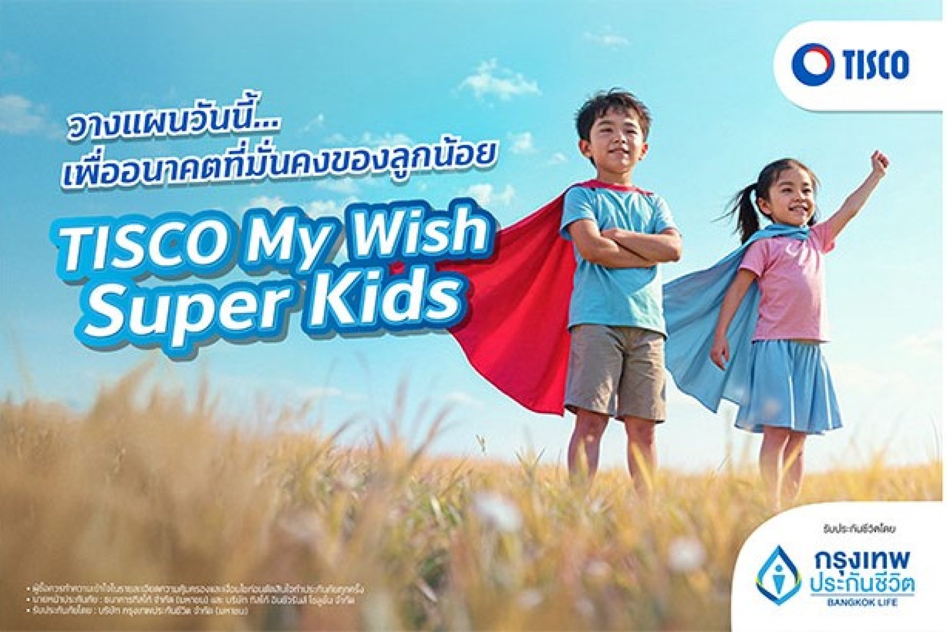 ธนาคารทิสโก้ (มหาชน) จึงร่วมกับ บริษัท กรุงเทพประกันชีวิต จำกัด (มหาชน) นำเสนอผลิตภัณฑ์ "ประกันชีวิต สะสมทรัพย์ TISCO My Wish Super Kids" ซึ่งเป็นมากกว่าแบบประกันสะสมทรัพย์ทั่วไป แต่เป็นเครื่องมือวางแผนการเงินให้ลูกแบบรอบด้านในกรมธรรม์เดียว ทั้งการออมที่เติบโตตามเป้าหมาย การคุ้มครองชีวิตและอุบัติเหตุ คุ้มครองโรคร้ายแรงในเด็ก และความอุ่นใจหากเกิดเหตุไม่คาดคิด ลูกจะยังมีเงินทุนเดินหน้าตามฝันต่อไปได้ เราเชื่อว่าการเริ่มต้นวางแผนเร็ว คือการให้ของขวัญที่มีค่าที่สุดกับลูก และด้วยแบบประกันนี้ พ่อแม่จะมั่นใจได้ว่า แม้การดำเนินชีวิตจะมีความไม่แน่นอน เส้นทางสู่อนาคตของลูกจะยังคงมั่นคง นางกุสุมา กล่าว