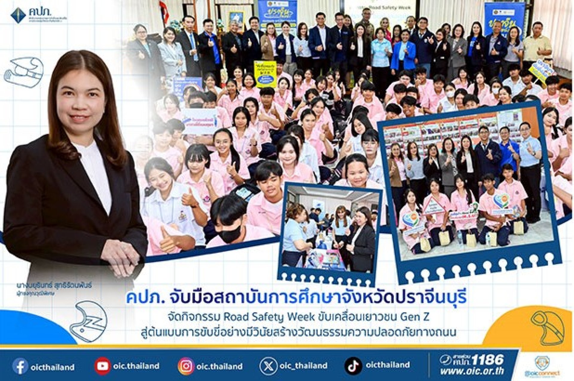 คปภ. จับมือสถาบันการศึกษาจังหวัดปราจีนบุรี จัดกิจกรรม Road Safety Week ขับเคลื่อนเยาวชน Gen Z สู่ต้นแบบการขับขี่อย่างมีวินัยสร้างวัฒนธรรมความปลอดภัยทางถนน