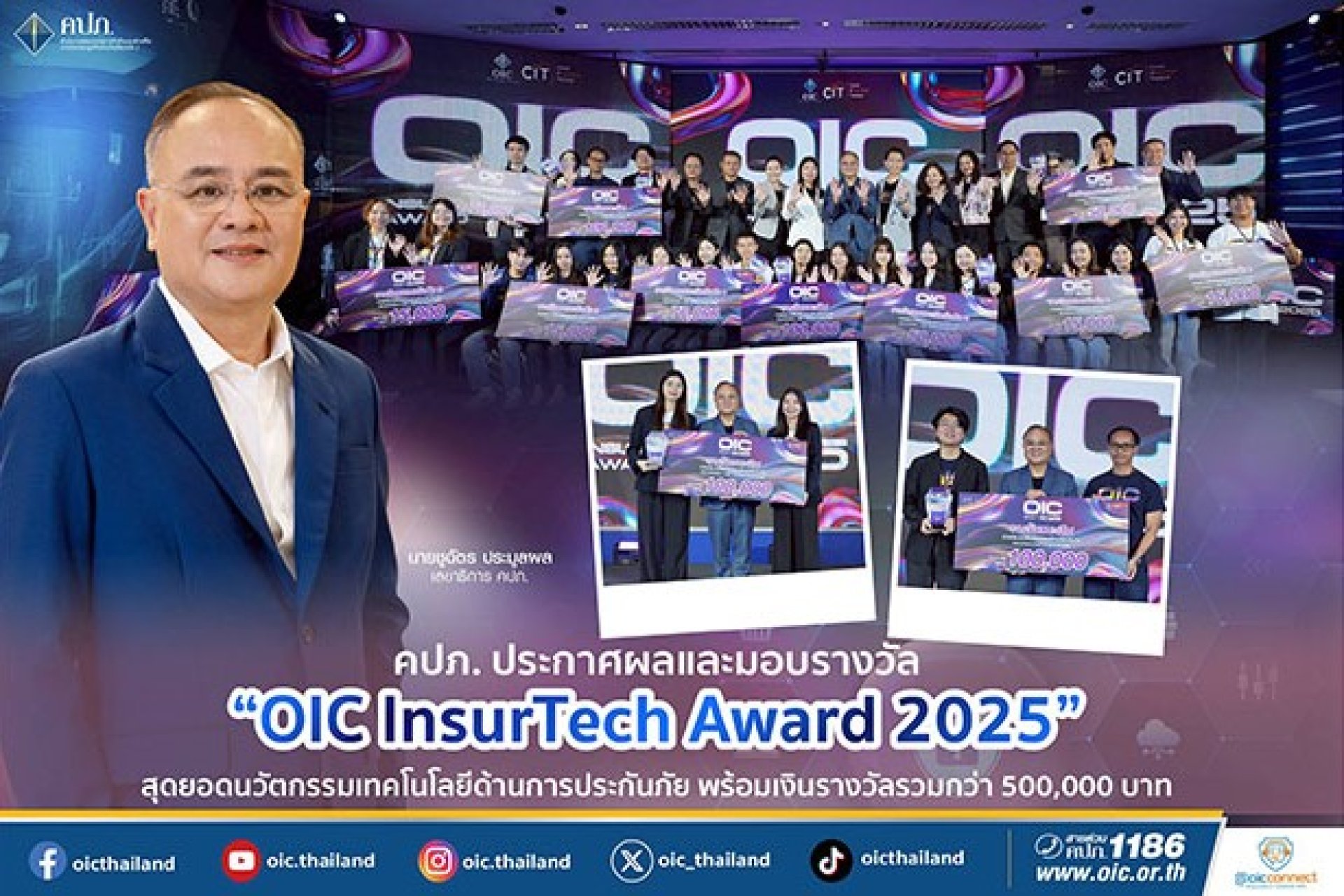 คปภ. ประกาศผลและมอบรางวัล “OIC InsurTech Award 2025” สุดยอดนวัตกรรมเทคโนโลยีด้านการประกันภัย พร้อมเงินรางวัลรวมกว่า 500,000 บาท