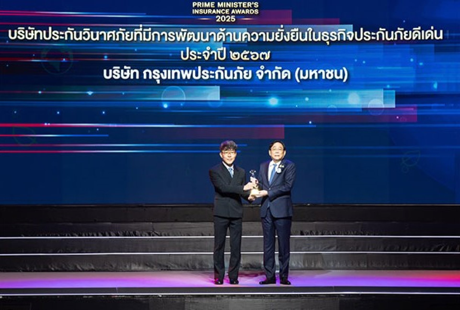 กรุงเทพประกันภัยตอกย้ำความสำเร็จคว้า 2 รางวัลสุดยอดบริษัทประกันภัยดีเด่น จากสำนักงาน คปภ. รางวัลบริษัทประกันวินาศภัยที่มีการพัฒนาด้านความยั่งยืนในธุรกิจประกันภัยดีเด่น ติดต่อกันต่อเนื่องเป็นปีที่ 2