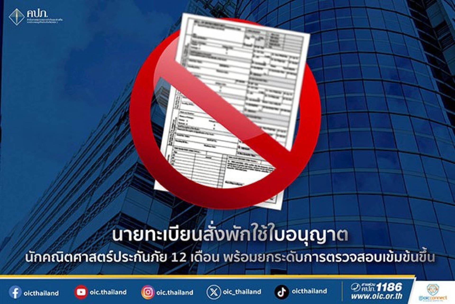 นายทะเบียนสั่งพักใช้ใบอนุญาตนักคณิตศาสตร์ประกันภัย 12 เดือน พร้อมยกระดับการตรวจสอบเข้มข้นขึ้น