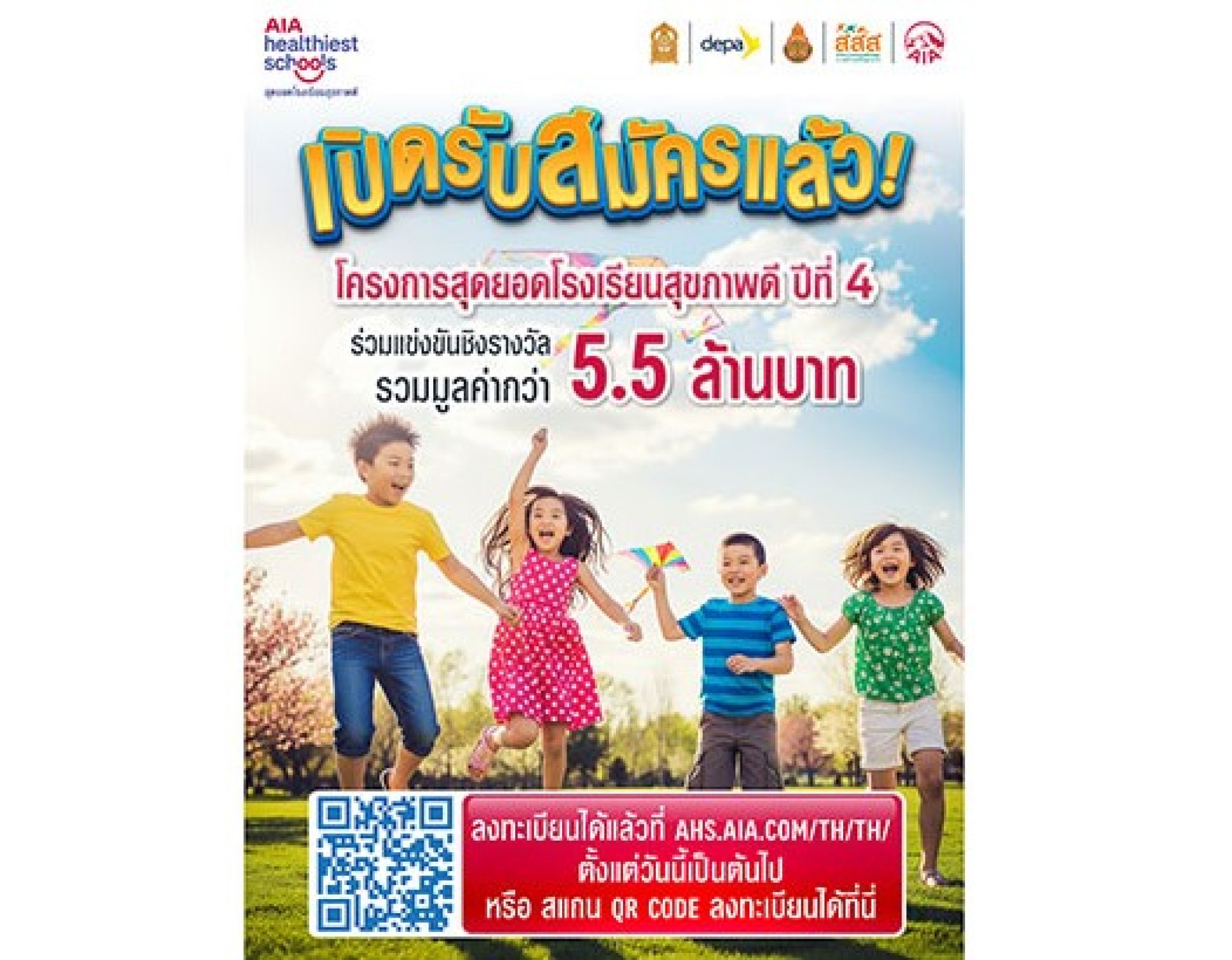 เอไอเอ ประเทศไทย สานต่อโครงการ สุดยอดโรงเรียนสุขภาพดี - AIA Healthiest Schools ซึ่งจัดต่อเนื่องเป็นปีที่ 4 โดยได้รับความร่วมมืออย่างต่อเนื่องจากกระทรวงศึกษาธิการ สำนักงานส่งเสริมเศรษฐกิจดิจิทัล (depa) และ สำนักงานกองทุนสนับสนุนการสร้างเสริมสุขภาพ (สสส.) เปิดรับสมัครโรงเรียนระดับประถมศึกษาและมัธยมศึกษาทั่วประเทศเข้าร่วมโครงการเพื่อชิงรางวัลรวมกว่า 2 ล้านบาท และมีโอกาสได้เป็นตัวแทนประเทศไทย เข้าร่วมการแข่งขันในระดับนานาชาติ เพื่อชิงรางวัลอีกกว่า 3.5 ล้านบาท รวมมูลค่ารางวัลสูงสุดถึง 5.5 ล้านบาท ตอกย้ำถึงพันธกิจ AIA One Billion ของเอไอเอ ที่มุ่งสนับสนุนเยาวชนและผู้คนในภูมิภาคเอเชียกว่าหนึ่งพันล้านคนให้มีสุขภาพและชีวิตที่ดีขึ้น ตามคำมั่นสัญญา Healthier, Longer, Better Lives